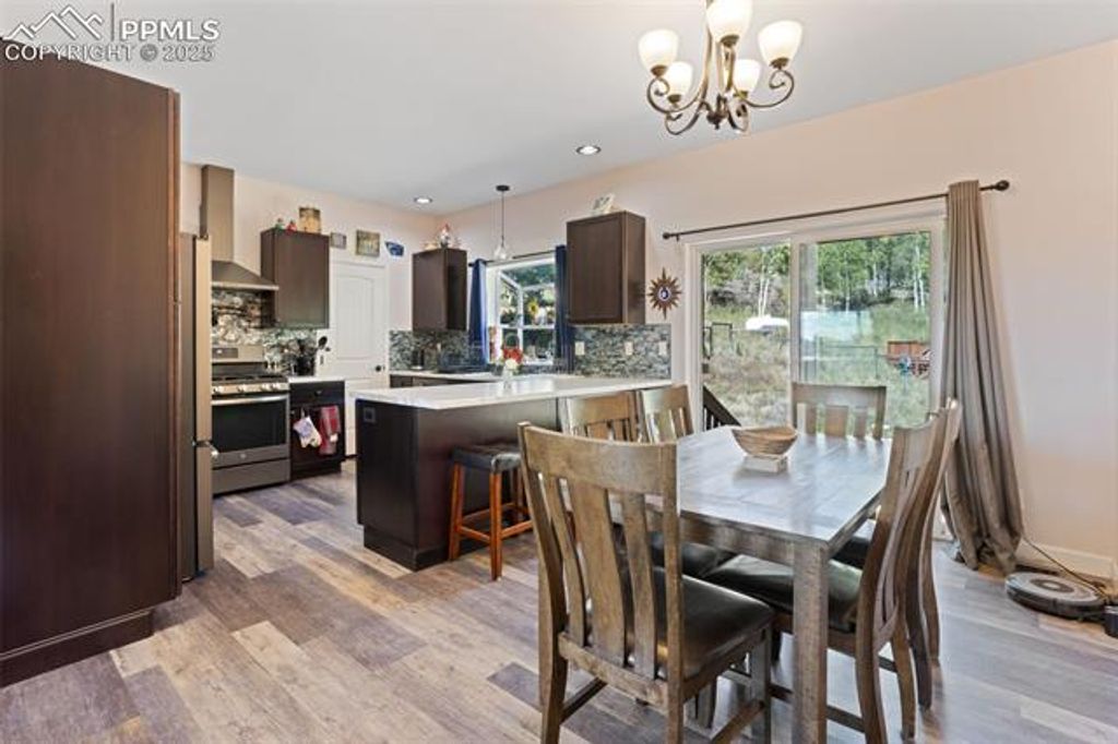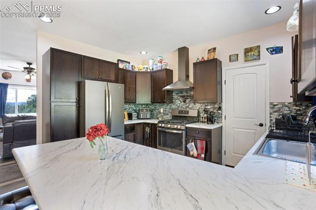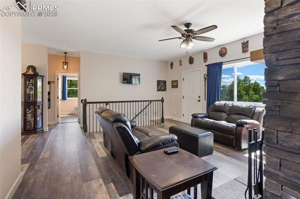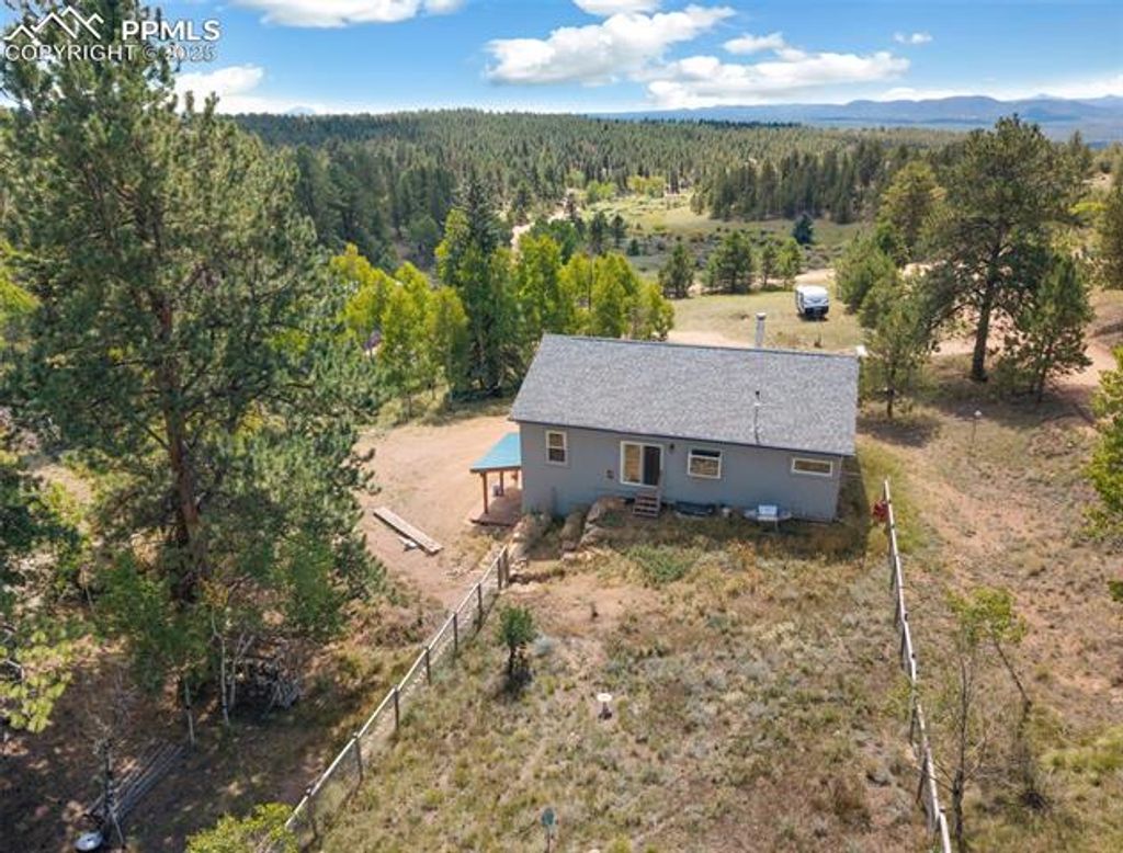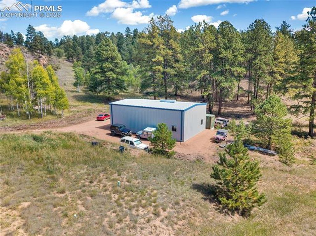Nestled on 4 private acres surrounded by mountain views, towering pines, and dramatic rock formations, this 2018 ranch-style home blends modern comfort with the serenity of Colorado mountain living. Featuring 3 bedrooms and 2 bathrooms, plus a full walk-out basement, it offers both everyday comfort and room to expand. Inside, you'll find an inviting open layout with a warm living room anchored by a stone fireplace, a well-appointed kitchen with gas range, and a spacious dining area. The primary suite serves as a private retreat, highlighted by a beautifully finished bathroom with heated floors. The secondary bathroom also features heated floors, adding a touch of comfort and luxury throughout the home. A newly built 1,500 sq ft equipment storage building (2024) provides abundant space for vehicles, tools, RVs, and hobbies, complementing the home's thoughtful design. The property also includes a 30-amp RV plug and a built-in RV dump that ties directly into the septic system "” perfect for RV enthusiasts. This home is outfitted with a comprehensive water treatment and utility system: sediment filter, sulfur filter, water softener with salt tank, 50-gallon water pressure tank, 50-gallon propane water heater, 1,000-gallon septic tank, and a deep 750' well powered by a 1.5 hp pump. A reverse osmosis system in the kitchen ensures pristine drinking water. Together, these upgrades deliver reliable quality and long-term peace of mind. Outdoor living shines with a playhouse, a cozy fire pit area, and plenty of usable land to enjoy the fresh mountain air. Located in Woodland Park School District Re-2, this property offers rural tranquility while keeping you close to Woodland Park, Divide, and Colorado Springs. This home combines modern efficiency, acreage living, and a complete set of utility and storage features "” ready for its next owner.