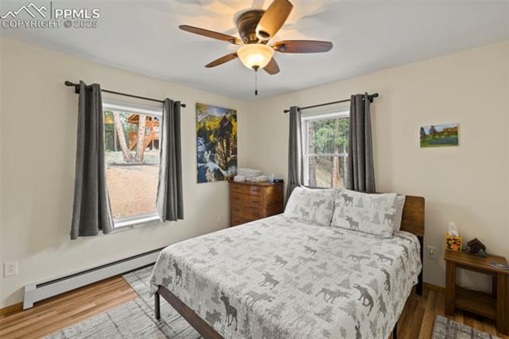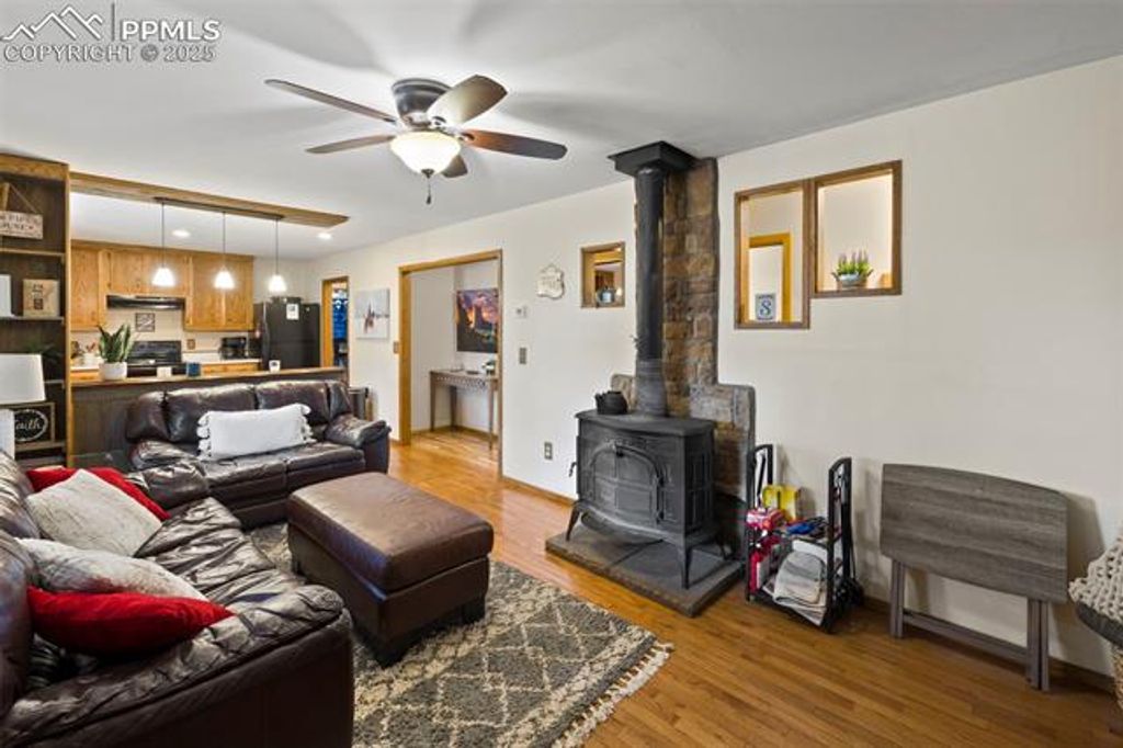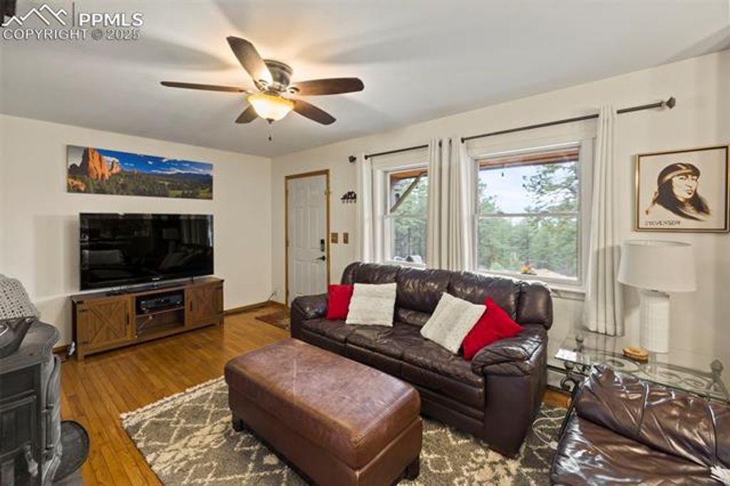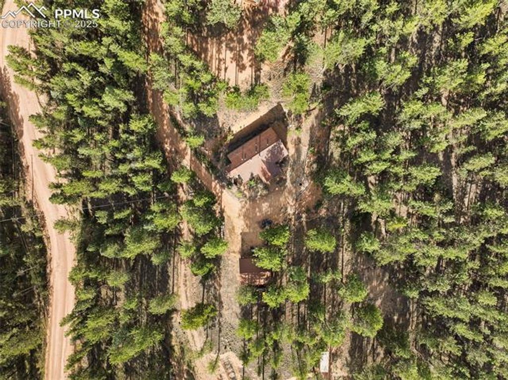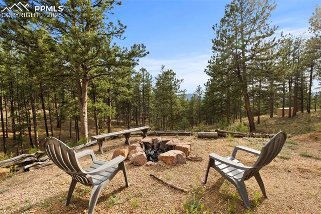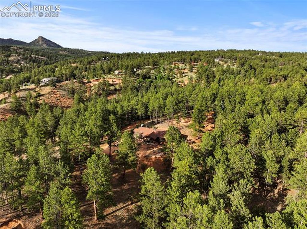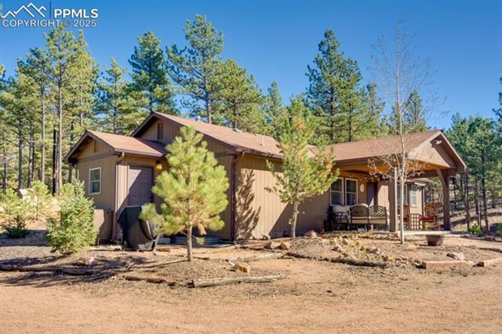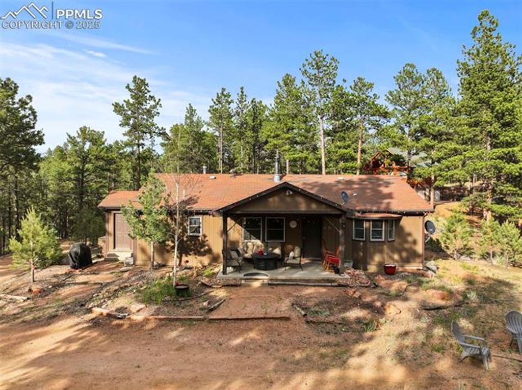 Tucked away on 2.48 acres at the top of a hill in the peaceful Florissant Heights area, this ranch-style home offers the perfect blend of privacy, mountain charm, and modern convenience"”with no HOA restrictions. Surrounded by mature trees and beautiful mountain views, the property is fully set up as a short-term rental, offering an ideal opportunity to generate income or enjoy as a personal mountain getaway. Inside, the cozy living room features a wood-burning fireplace, perfect for chilly evenings. The kitchen includes natural wood cabinets, solid-surface countertops, and all appliances. A separate dining area with French doors transitions seamlessly from casual meals to entertaining. Two well-sized bedrooms and two full bathrooms, including an en-suite in the primary bedroom, provide comfort and functionality. A dedicated mudroom and laundry area with electric hookups keeps things running smoothly. The oversized detached 2-car garage includes a workshop space for hobbies, storage, or weekend projects. Whether you're seeking a peaceful retreat, a turn-key investment property, or a bit of both, this home delivers. Additionally, two adjoining 3± acre parcels are currently for sale, allowing the potential to own nearly 10 contiguous acres for even more privacy, expansion, or investment opportunities. Don't miss this rare chance to own a move-in-ready mountain home with income potential, stunning views, and room to grow.