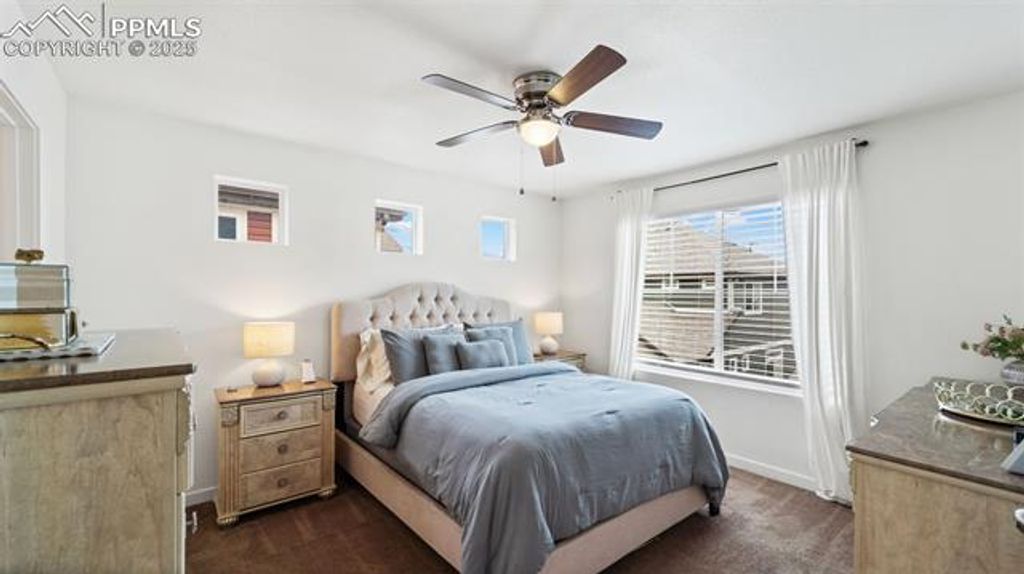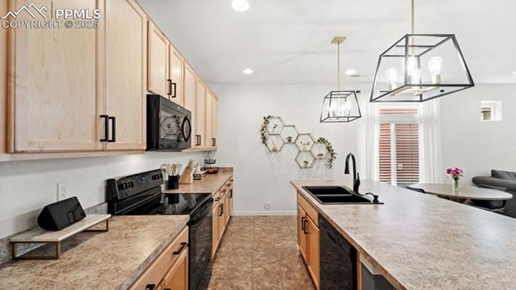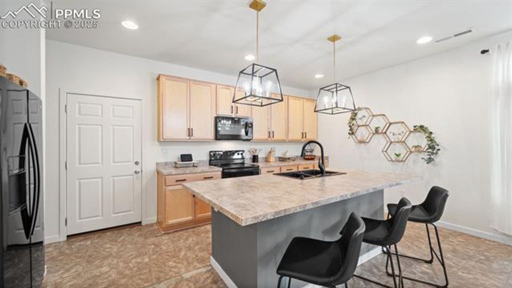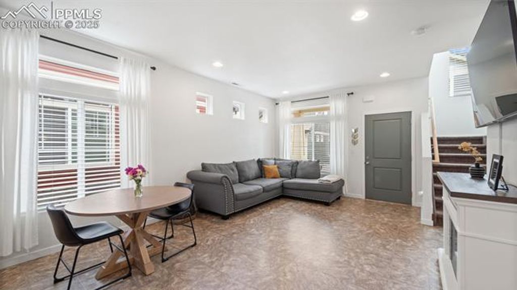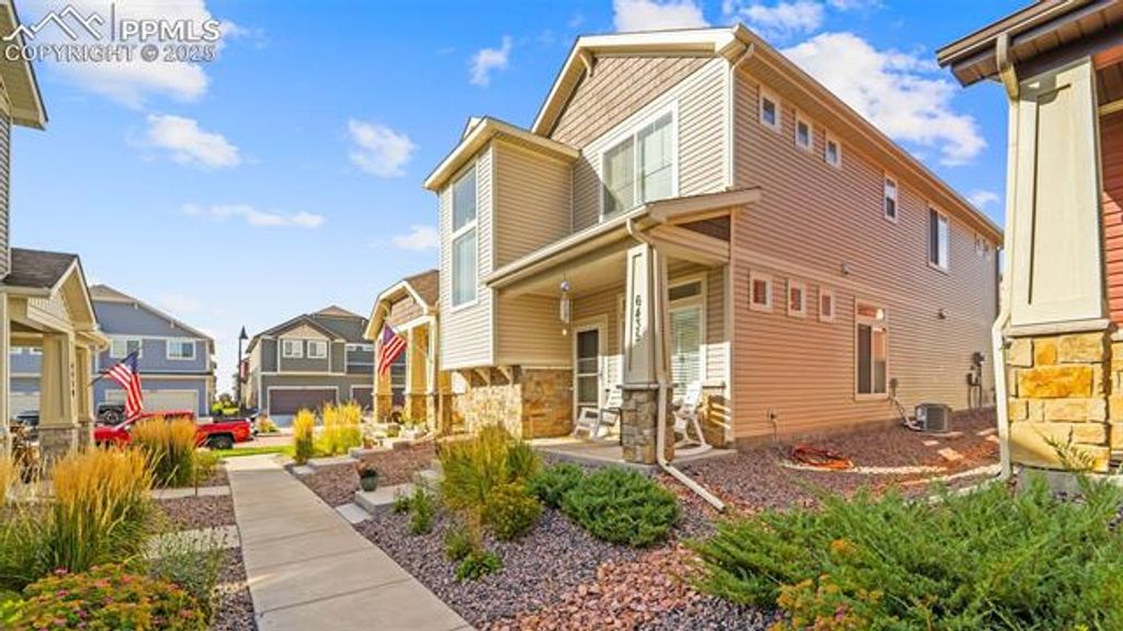 Located in the heart of Banning Lewis Ranch Discover the perfect balance of modern living and cozy charm in this beautifully maintained 4-bedroom, 3-bathroom, 1,635 sq ft home, ideally nestled in the amenity-rich community of Banning Lewis Ranch. Step inside and you'll immediately notice the bright, open-concept layout featuring neutral tones, a spacious living area flooded with natural light, and elegant touches throughout. The kitchen boasts sleek black appliances, a large center island with brand-new pendant lighting, and bar seating ideal for casual mornings or entertaining guests. Upstairs, retreat to your serene primary suite with an ensuite bathroom and generous closet space. Three additional bedrooms provide flexibility for family, guests, or that dream home office. You'll also love the stylish dining nook, all the updated interior lighting fixtures, custom accent walls, and thoughtful design touches that add warmth and character to every space. Location Perks: Minutes from Inspiration View Elementary, Skyview Middle, and Vista Ridge High School, plus nearby parks, trails, pools, and the Ranch House fitness center, this home is in one of the city's most beloved neighborhoods.