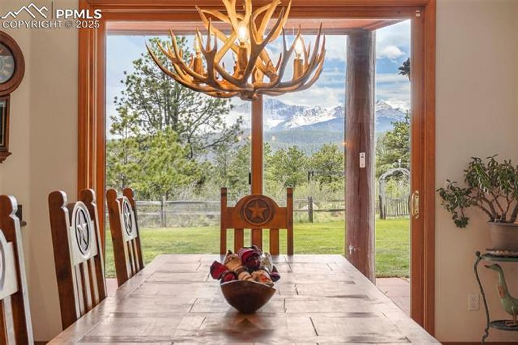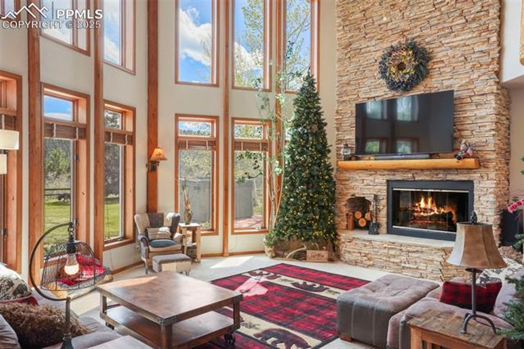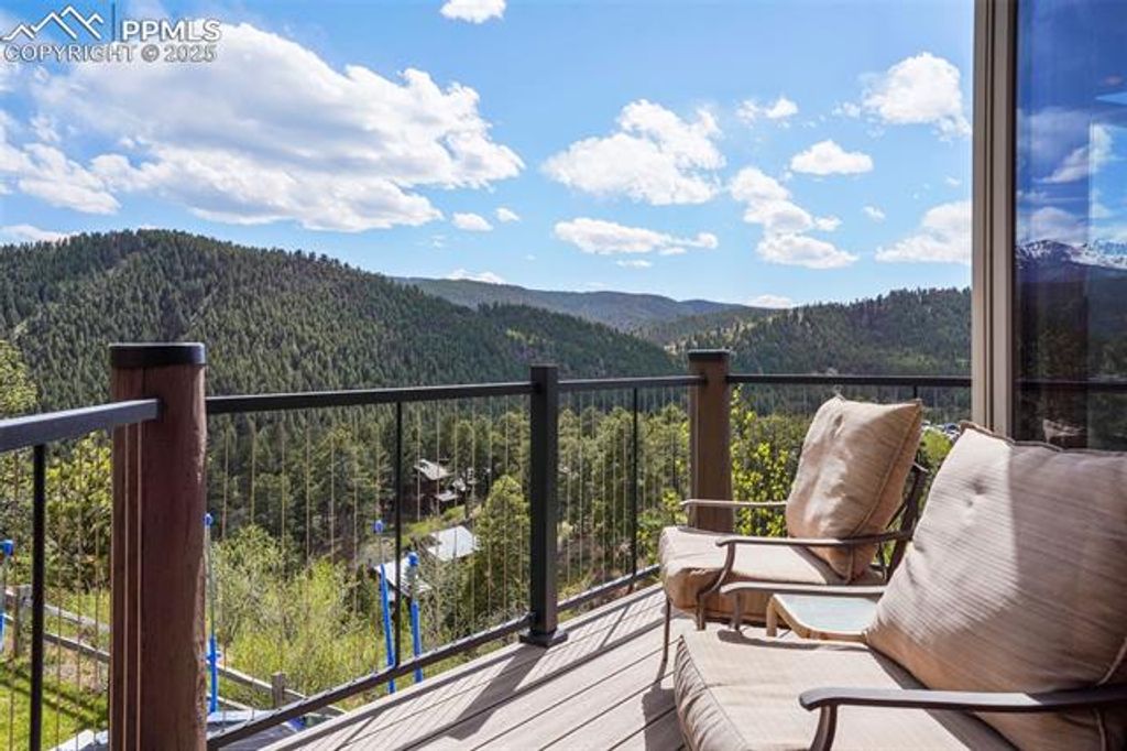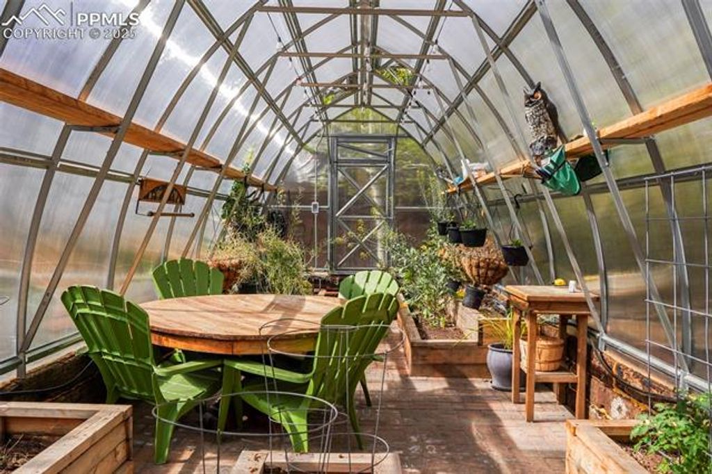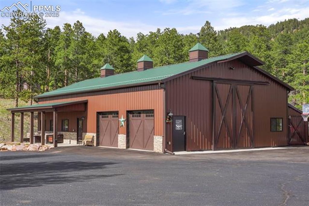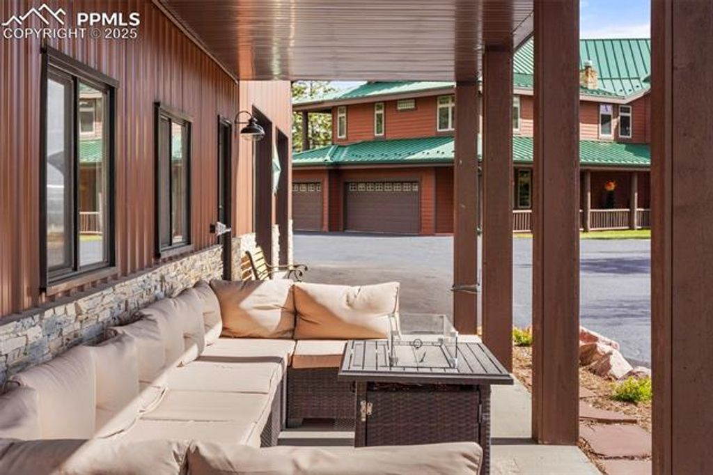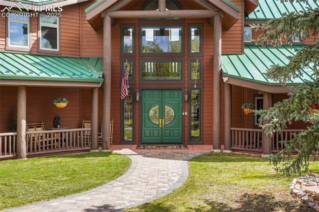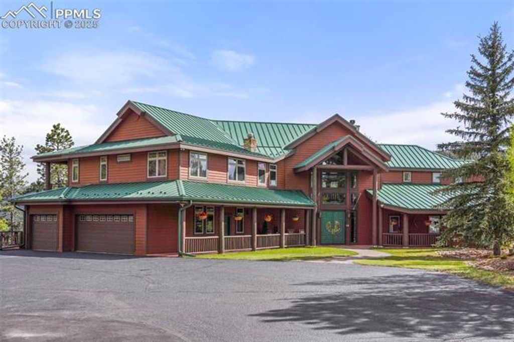 Situated on 3.02-acres, within the city limits of Woodland Park, CO this stunning estate boasts breathtaking views of Pikes Peak and offers private access to the National Forest, perfect for outdoor enthusiasts. Conveniently located just minutes from all modern amenities, this home offers a peaceful atmosphere. The centerpiece of the property is a beautiful 5,497 square foot mountain lodge-style home featuring six bedrooms and six bathrooms that provides ample space and comfort. The residence was thoughtfully designed to maximize the panoramic mountain vistas from nearly every room. The heart of the home boasts soaring cathedral ceilings in the great room with charming log accents and an inviting fireplace, creating a welcoming atmosphere. The gourmet kitchen is sure to impress even the most discerning chefs. The home provides two master suites and a guest suite. The main floor master suite is currently utilized as a recreation and game room. This portion of the home includes a five-piece bath, walk-in closet, an bedroom/office and dedicated workout room. The second floor hosts the second primary suite, 2 additional bedrooms with attached bathrooms and walk-outs to deck space, and a quiet office. The guest suite contains a convenient kitchenette, dedicated bathroom, small study, and a bedroom with access to a deck rounds out the second floor. Outdoor highlights include a newly added and custom-designed 36x64 heated RV shop/garage, a Planta greenhouse, a resort-style fire pit, and large swim spa. Adding a touch of charm, is a creatively repurposed gondola from Steamboat Springs Ski Resort, providing a memorable hangout spot. This combination of characteristics is extremely rare in the Woodland Park market. Colorado Springs is a short fifteen minute drive to the east, and the Colorado Springs Airport is easily accessible within a forty-five-minute drive. Recreation abounds here as this is a vacation destination. This is a truly exceptional Colorado estate!