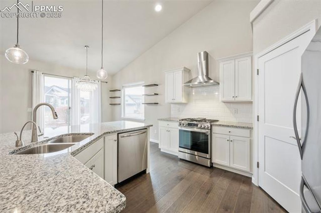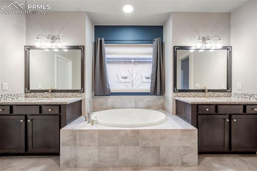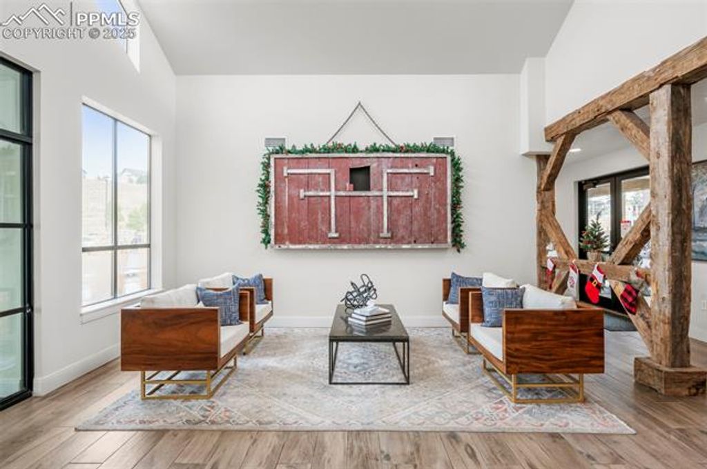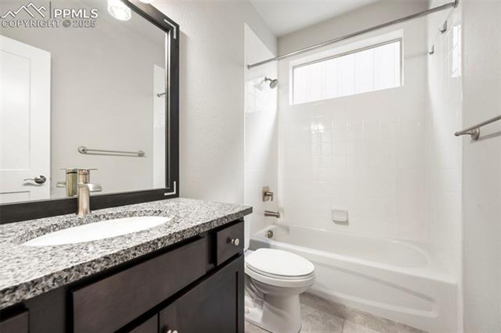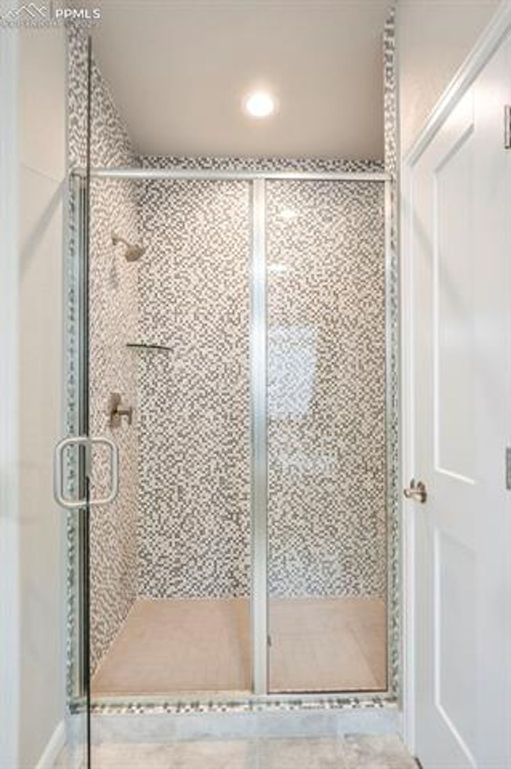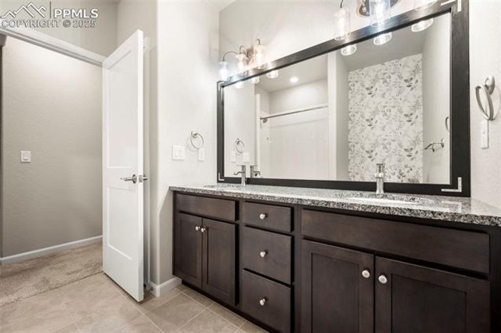 Welcome to a thoughtfully upgraded and move-in ready home offering privacy, stunning mountain views, and exceptional outdoor living in the highly sought-after Farm at Northgate & D-20. With five bedrooms and three bathrooms, this home blends modern comfort with purposeful design across two spacious levels. Rate incentive buydown available. A custom 12'x12' covered front patio addition adds charm and privacy, creating the perfect spot for a quiet retreat or a welcoming guest entrance. Inside, the main level features engineered hardwood flooring, designer lighting, and a spacious great room with vaulted ceilings, a gas fireplace, and built-in surround sound. The gourmet kitchen includes granite counters, premium appliances, soft-close cabinetry, a large island, instant hot water, and a walk-in pantry. Upstairs, the primary suite offers breathtaking views of Pikes Peak and a five-piece bath with frameless glass shower, two shower heads, dual vanities, and a custom walk-in closet. Two additional bedrooms share a full hallway bath, and the upper-level laundry room includes built-in cabinetry and a utility sink for added convenience. The finished basement features 9-foot ceilings, a stylish wet bar, electric fireplace, expansive recreation room, two additional bedrooms, a full bathroom, and a dedicated gym or flex space. Step outside to enjoy the best of Colorado living with a covered pergola, natural gas-connected KitchenAid grill, privacy shades, and an expansive patio overlooking Pikes Peak with direct access to the Compassion Trail and neighborhood path system. Additional highlights include an oversized three-car garage, central air conditioning, and a large outdoor storage shed. Located on a quiet and highly desirable private street in The Farm and walking distance to The Gathering Place, community pool, fitness center, parks, and trails. With quick access to I-25, Interquest, USAFA, and award-winning schools, this home is a must-see.