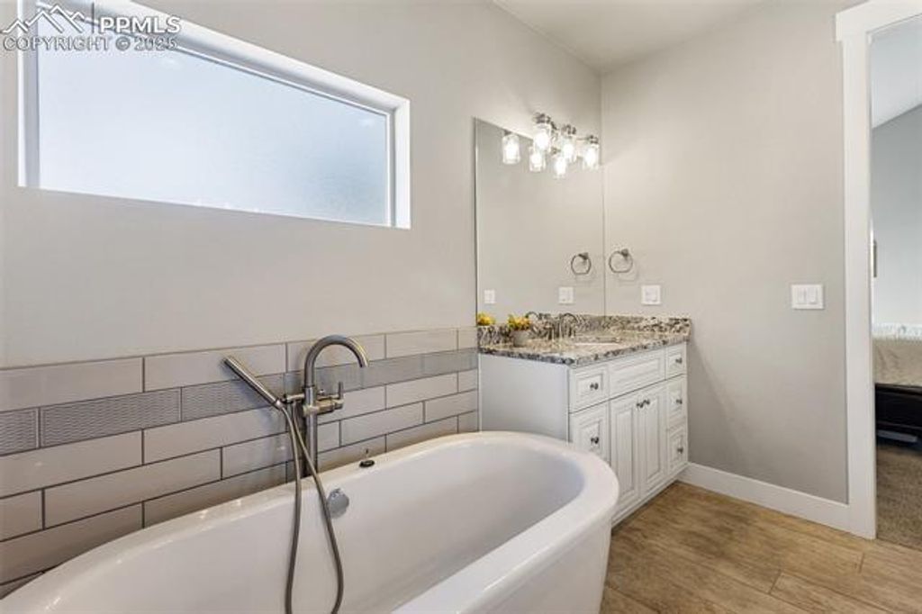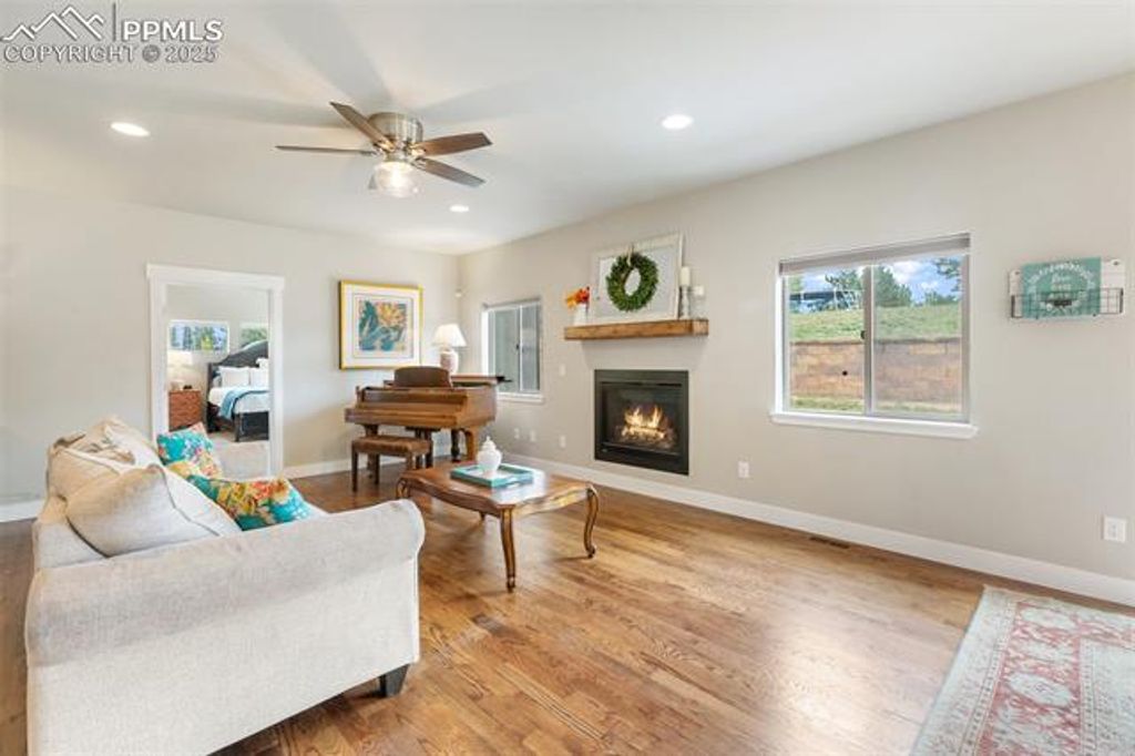 Welcome to your dream home in the heart of Stone Ridge Village! This beautifully finished and impeccably maintained ranch-style residence embodies comfort and elegance, making it the perfect sanctuary for modern living. As you enter, you are greeted by an expansive foyer that sets the tone for the entire home. The wide entryway invites natural light and creates an open ambiance that leads you effortlessly into the heart of the home. The highlight of this delightful residence is the spacious great room, featuring a stunning chef's kitchen with high-end appliances, beautiful cabinetry, and generous counter space. This light and bright area effortlessly flows into the dining area, making it an ideal layout for entertaining guests or enjoying family gatherings. The living area, with a charming fireplace, enhances the atmosphere of warmth and relaxation. Retreat to the luxury owner's suite, a true oasis complete with a spa-like experience. This tranquil space features a freestanding soaking tub, double vanities, and a spacious walk-in closet. On the main floor, you will also find a versatile secondary bedroom that can easily serve as an office or guest room, accompanied by a full bath. Descend to the lower level to a large family room. The lower level also offers two additional spacious bedrooms and a full bath, along with a generously sized storage room. Set on a nicely landscaped lot, the outdoor space is equally impressive, featuring a patio perfect for enjoying morning coffee or hosting summer barbecues. The property backs onto neighborhood open space, providing a serene backdrop while ensuring privacy. Ideally situated just minutes from the center of Woodland Park, this home offers easy access to local parks, top-rated schools, delightful shops, and a variety of restaurants. Whether you're seeking adventure in the great outdoors or the convenience of urban living, you'll find it all here. Don't miss your opportunity to own this exceptional ranch home!