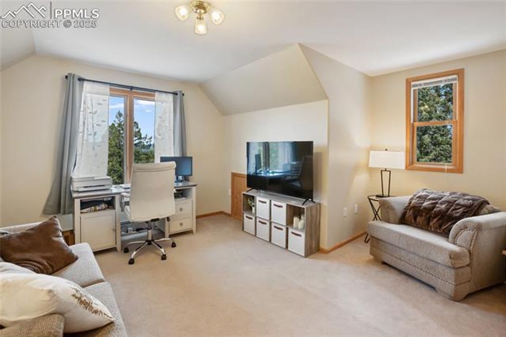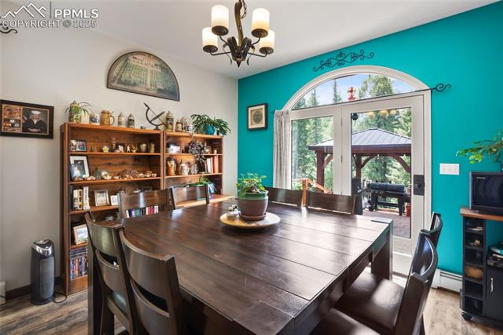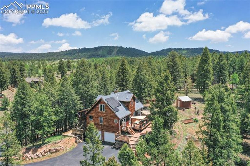Welcome to 2885 Sunnywood Avenue, an extraordinary mountain retreat nestled in the mountains of Woodland Park, Colorado. This stunning home is situated on a spacious, beautifully treed 1-acre lot that offers both privacy and the perfect blend of forested charm and modern comfort. With easy access to trails, parks, and downtown Woodland Park, this property provides the ideal balance of peaceful seclusion and convenience. This amazing home is exceptionally well-maintained, inside and out! As you step inside, you're greeted by soaring vaulted ceilings, expansive windows, and an open-concept layout that fills the home with natural light. The living room features a cozy wood-burning fireplace and walks out to an oversized deck and manicured back yard"”perfect for enjoying Colorado's breathtaking sunsets and fresh mountain air. The gourmet kitchen is a chef's dream, complete with stainless steel appliances, ample cabinet space, and a breakfast bar for casual dining. This 3-bedroom, 3-bath home offers a spacious primary suite with back deck access, a walk-in closet, and a luxurious en suite bath with a soaking tub and separate shower. The two additional bedrooms are generously sized with large closets and share access to a full bath. These versatile rooms are also deal for a home office, reading nook, or guest space. The finished walk-out basement includes a large family room providing flexibility for entertainment, relaxation, or hobbies. Step outside to a beautifully landscaped yard with rock features, mature pines, aspen trees, and room to explore or garden. Other highlights include a 2-car attached garage, paved driveway, and solar system that produces enough to cover almost all of the electric bill! Whether you're seeking a full-time residence or a weekend getaway, 2885 Sunnywood Avenue is your perfect mountain haven"”serene, stylish, and move-in ready. Don't miss your chance to own this exceptional piece of Woodland Park living!