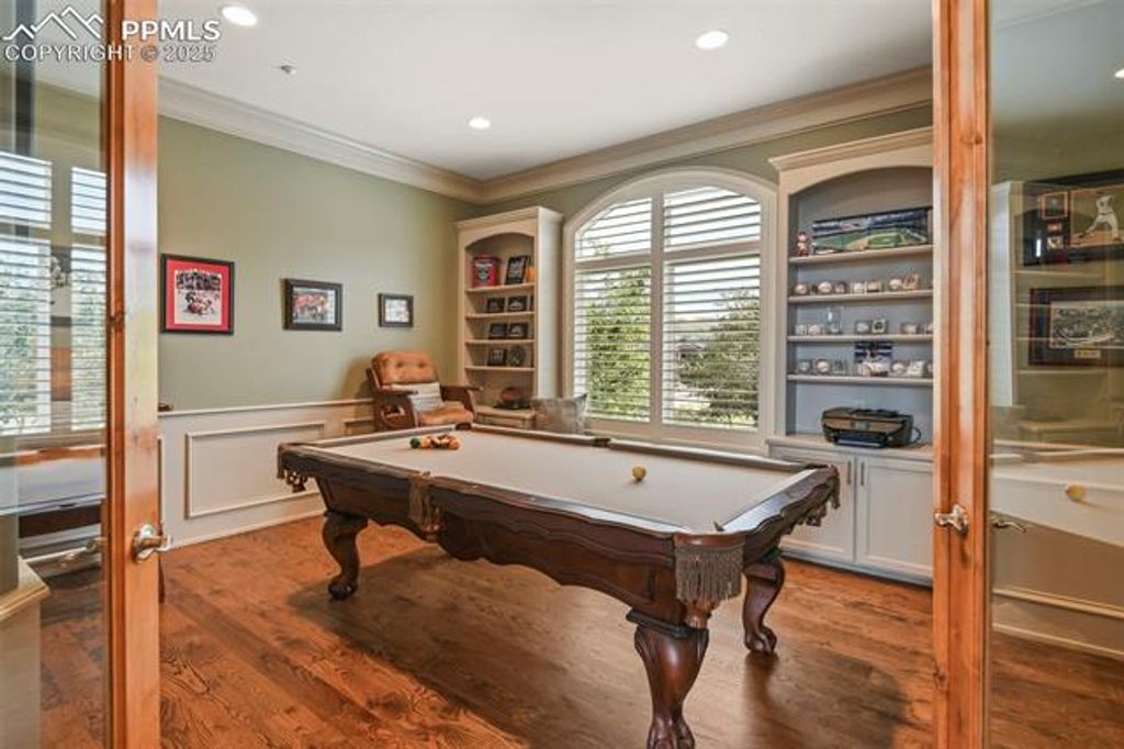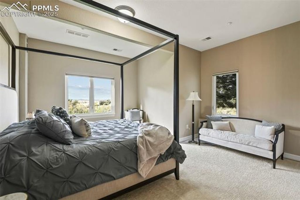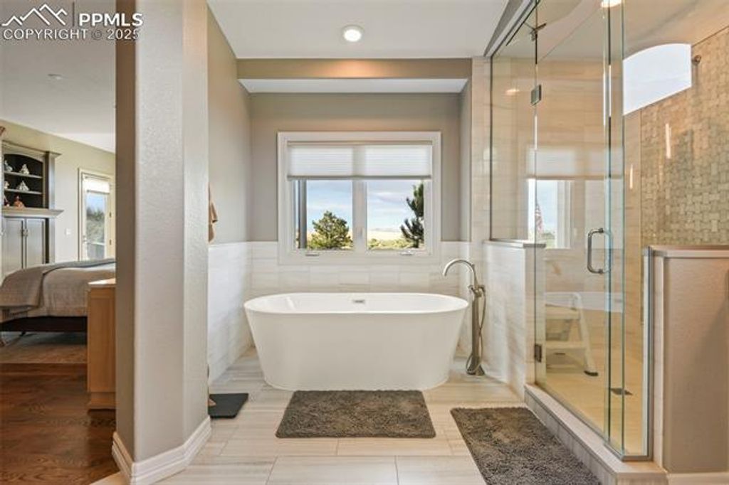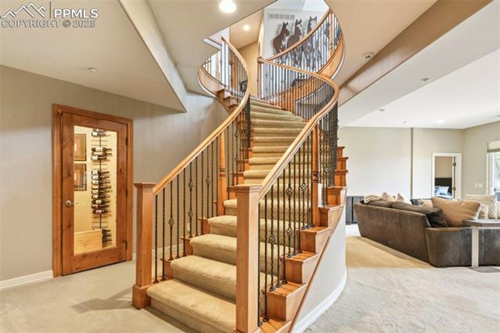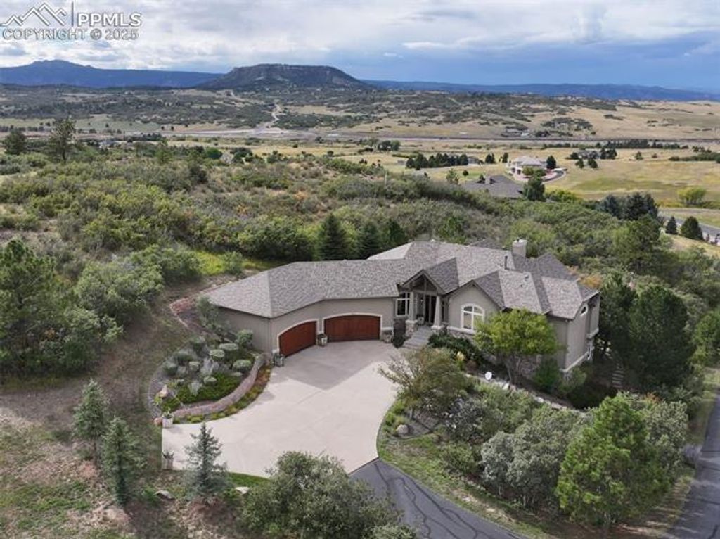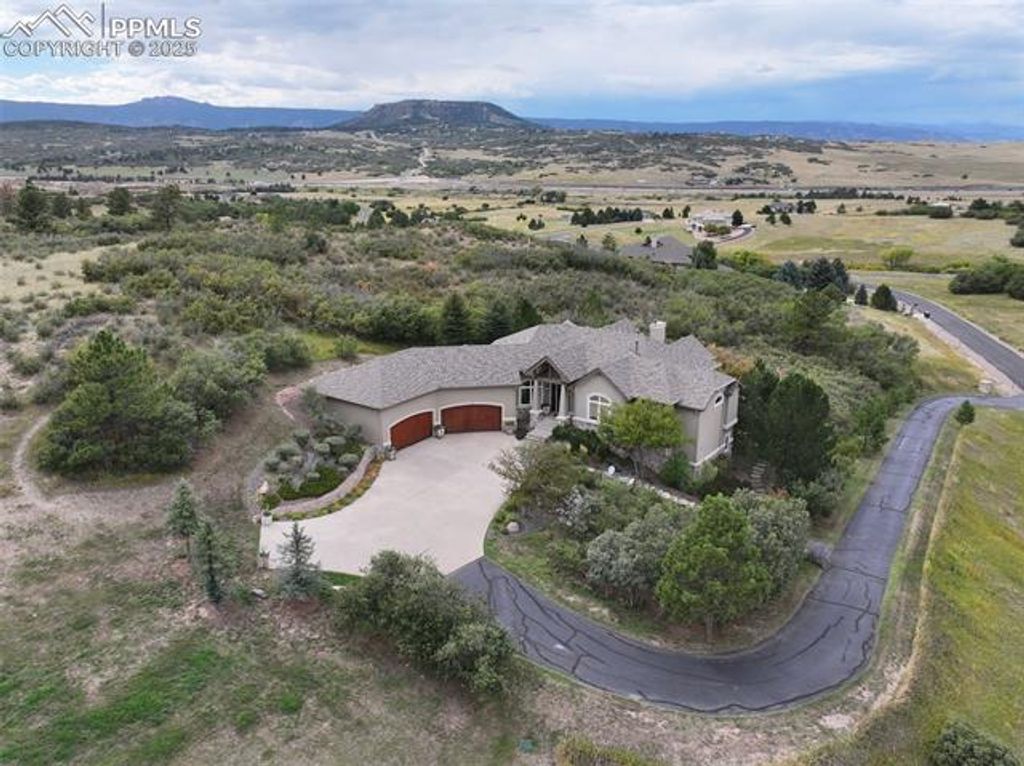 Experience true Colorado living in this custom Bell Mountain Ranch estate designed to blend timeless elegance with modern mountain updates. This thoughtfully designed floorplan offers 4 bedrooms, 4 bathrooms, 2 living spaces, a formal dining, and 2 flex spaces set on a scenic 6.4 acre lot with expansive mountain views. The striking spiral wrought-iron staircase anchors the entry, leading to open living spaces enhanced by three gas fireplaces and custom built-ins throughout. The main level showcases updated 5-inch plank hardwood floors, seamlessly connecting the formal and casual living areas. Indulge in the newly remodeled bathrooms, including a luxurious primary suite with heated floors. Every detail has been thoughtfully customized, from the designer lighting, paint, wood finishes, to the stucco and stone exterior and the oversized 4-car garage not to mention the practical updates such as a new roof, newer HVAC, and AC. Step outside to a large Trex deck and covered patio, perfect for entertaining or enjoying serene sunsets. With trails and open space nearby, plus easy access to I-25, this home balances privacy, recreation, and convenience. This is more than a home "” it's a private retreat where custom craftsmanship meets Colorado beauty.