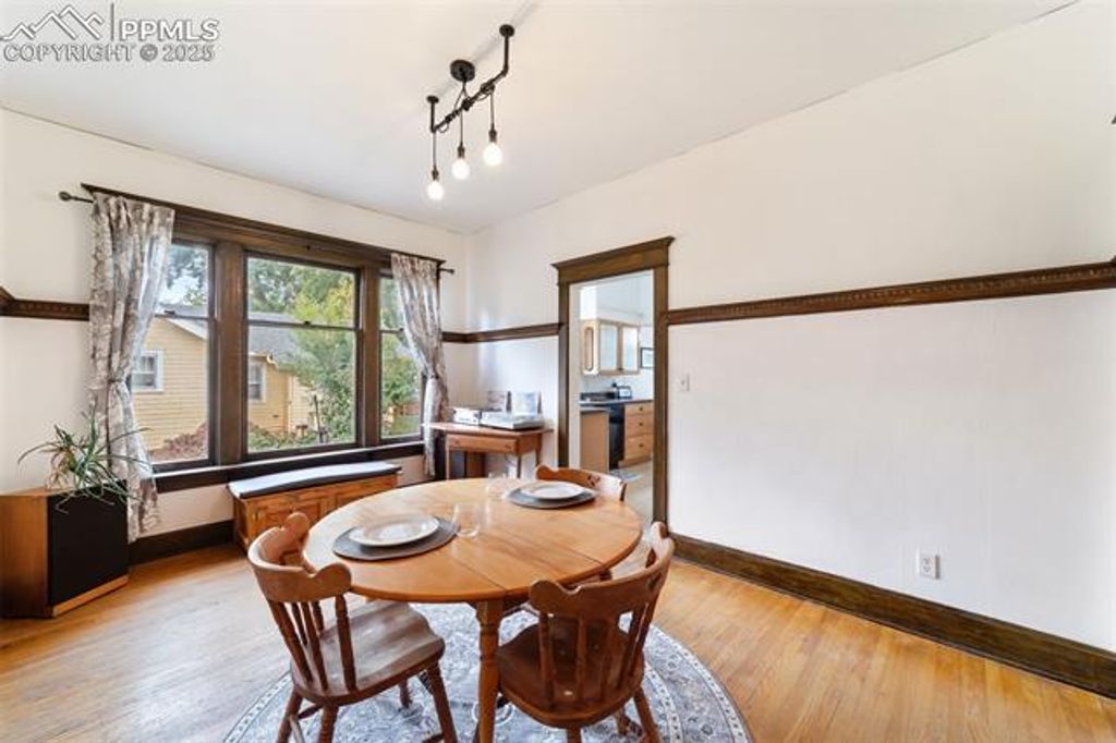 Welcome to this inviting turn-of-the-century bungalow, perfectly located near Patty Jewett Golf Course, Colorado College, and downtown shops and cafés. Original charm shines through wood floors, stained glass, charming built-ins, and a beautiful stone fireplace. Relax with coffee on the front porch or gather in the sunny kitchen nook. The home offers one HUGE primary bedroom and a second bedroom or home office space, an updated full bath, and a spacious dining room. A large backyard offers garden beds, a rare oversized 2+ car garage with 220V for your workshop or EV charger, and a versatile studio cottage with kitchenette and ¾ bath for guests or rental opportunities. The main bungalow also features a basement laundry and storage area that can be accessed by your cottage guest without having to go through the main house! Recent updates include newer furnace, water heater, and appliances.