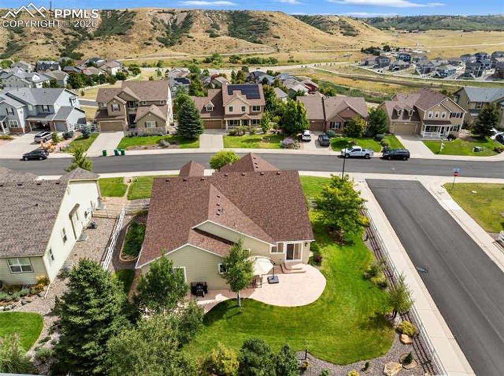 BETTER THAN NEW!! Don't miss your chance to make this completely updated 3,462 sf ranch-style home with a partial basement on nearly .25 acre corner lot in Crystal Valley Ranch your own Colorado home! Outside you will find mature landscaping, a water feature, a manicured fenced yard with a raised garden bed and a large outdoor patio the likes of which you won't find in a new build. The automatic sprinkler system and drip lines make maintenance easy! Walk out on the patio from the primary bedroom through the French doors or throw open those French doors to listen to the water feature and let the outdoors in as you enjoy your morning ocffee or read a book from the comfort of your primary bedroom. Updates completed in 2025 include NEW EXTERIOR PAINT~ NEW ROOF ~ NEW AMANA FURNACE WITH SMART HOME THERMOSTAT ~ NEW WATER HEATER ~ NEW FINGERPRINT-RESISTENT STAINLESS STEEL APPLIANCES ~ NEW INTERIOR PAINT ~ NEW LIGHT FIXTURES ~ AND NEW IN 2024, NEW MOEN WATER MONITORING SYSTEM & UV AIR PURIFIER LIGHT! This home is ready for you to settle in and enjoy! Step inside to find a light, bright, and airy atmosphere that sets the stage for both relaxation and entertaining. The stylish natural hickory wood flooring flows seamlessly from the kitchen to the breakfast room. The kitchen, bathrooms and reading nook all feature natural hickory wood. The additional bedrooms are charming and versatile, perfect as guest rooms or a creative home office. Your guests will appreciate the full bath conveniently accessible from both bedrooms. For those with outdoor adventures in mind, this home boasts a spacious 3-car tandem garage for your workshop, ATVs, bikes, and toys! Plus, the expansive basement offers ample storage and a finished room ideal for crafting or a dedicated office space. Embrace the Colorado lifestyle you've always dreamed of. Don't miss the chance to make this enchanting house your home!