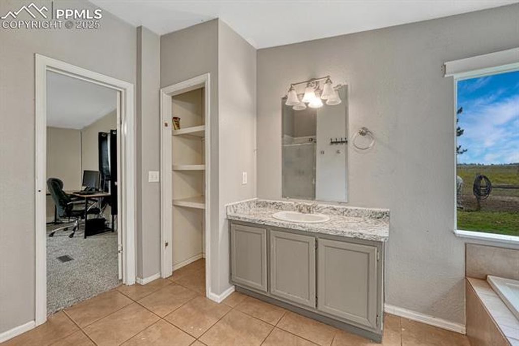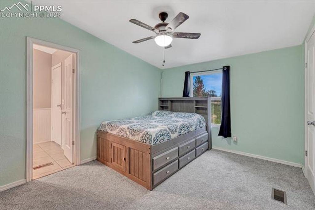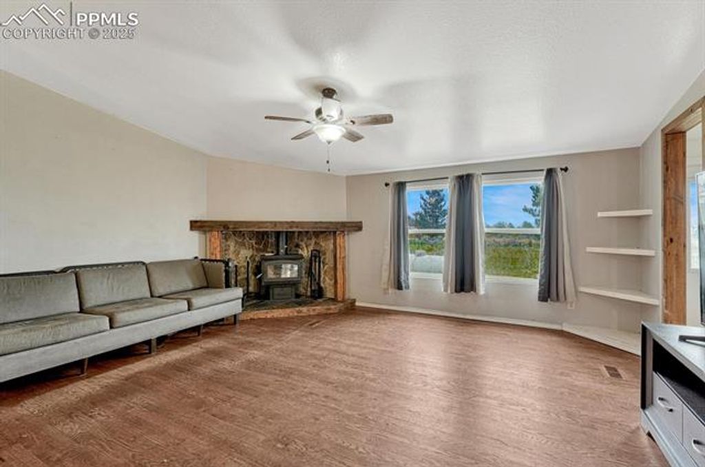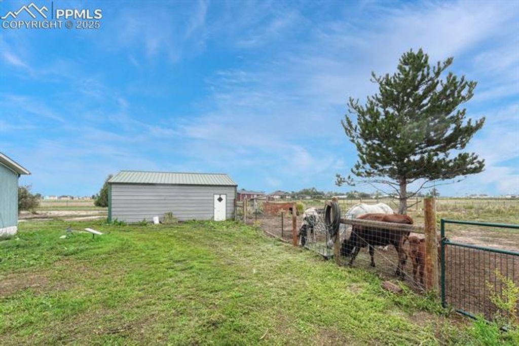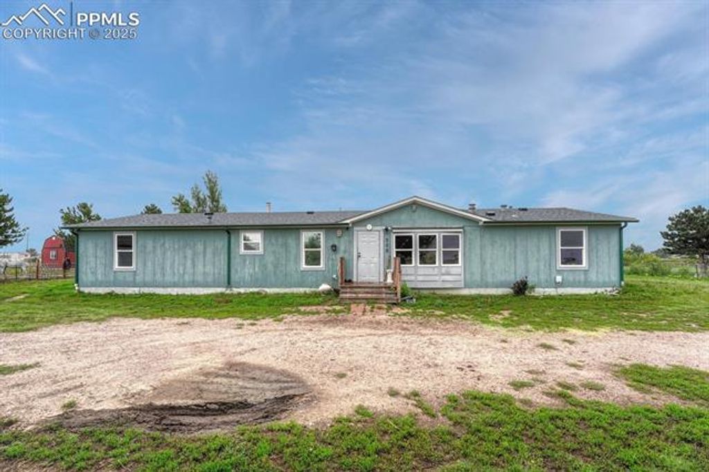 Welcome to your rural escape from the city! This charming home is just minutes from Colorado Springs, perfectly tucked away at the end of a cul-de-sac. This move-in-ready ranch-style home offers four bedrooms, 2.5 bathrooms, and sits on 4.75 acres with room for horses or other large animals. Picturesque views of Pikes Peak can be seen right from the front yard! Step inside to an open and airy floor plan designed for both comfort and style. The cozy family room features a wood-burning fireplace, perfect for those chilly Colorado nights. The updated kitchen is a chef's delight with modern stainless steel appliances, a gas range/oven, ample cabinet space, and a large island with additional storage. Featuring granite on the island and countertops. The kitchen flows seamlessly into the dining area, making it perfect for hosting large gatherings. Your private primary suite is a true retreat, complete with a double vanity, a soaking tub, and a separate shower. Three additional bedrooms and a full bath can be found on the other side of the house. Recent upgrades bring peace of mind, including luxury vinyl flooring, new carpet in two bedrooms, a new roof installed in 2022, and a new water heater installed in 2022. Step outside to the fully fenced property, zoned for up to four horses or other large animals. The two Tuff sheds offer extra storage space for all your supplies, while the oversized two-car garage is perfect to fit all your toys and then some. The circular driveway offers easy access and guest parking. Enjoy stunning mountain views and ample space for animals, gardening, or simply taking in the peaceful surroundings. Conveniently located less than 20 minutes to Falcon and less than 13 minutes to Schriever SFB, 20 minutes to Peterson SFB, and 35 minutes to Fort Carson.