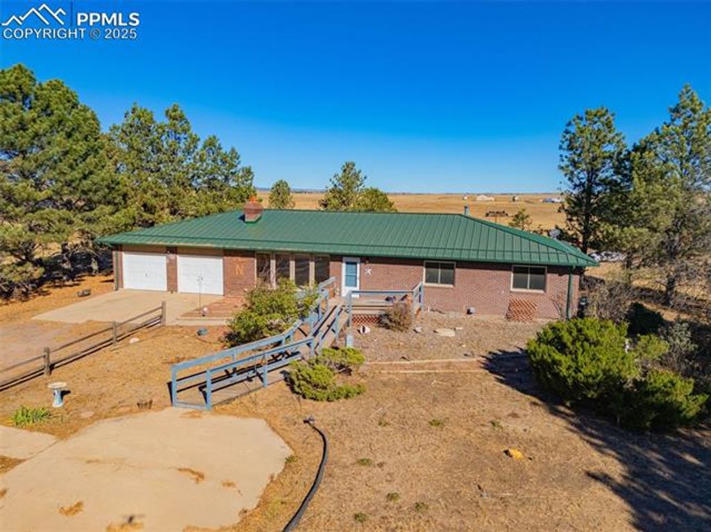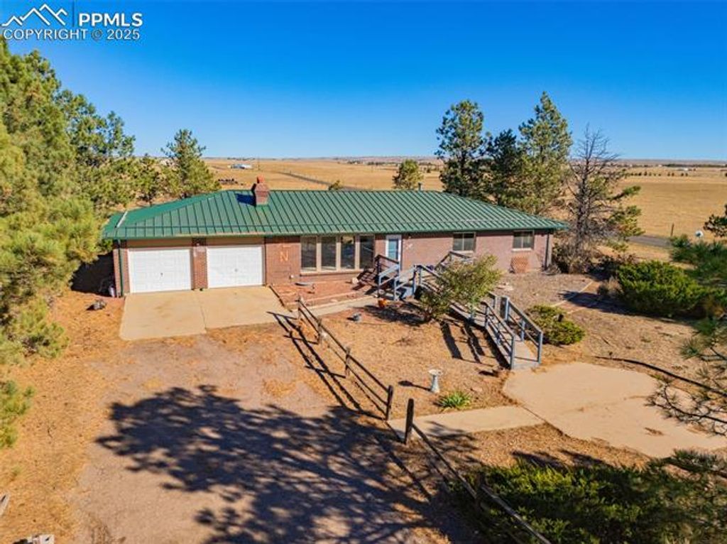 Welcome home to this stunning brick ranch-style residence perfectly situated on over 18 acres in Calhan, Colorado. Surrounded by mature, thoughtfully planted trees, this property offers the ideal blend of privacy, seclusion, and wide-open space. Step inside to a light-filled interior where large windows invite in plenty of natural light and showcase the scenic surroundings. The kitchen features beautiful oak cabinetry, stainless steel appliances, and ample counter space"”perfect for everyday living or entertaining. Enjoy the comfort of brand-new carpet throughout the main level, which also includes three spacious bedrooms, a primary suite with private bath, and an additional full bathroom. The finished basement expands your living space with a generous rec room, a charming brick-style bar, two additional bedrooms, and a three-quarter bath"”ideal for guests or family gatherings. Outside, the property truly shines. The fully fenced 18 acres include a homemade shooting range, beautiful mountain views, and endless opportunities to enjoy the Colorado outdoors. Conveniently located just 20 minutes from Falcon, you'll experience peaceful country living without sacrificing access to nearby amenities. Whether you're looking for a private retreat, a place to spread out, or simply a slice of Colorado paradise, this property delivers it all.