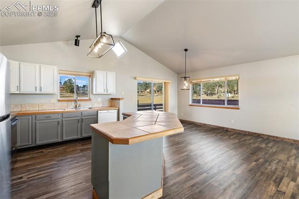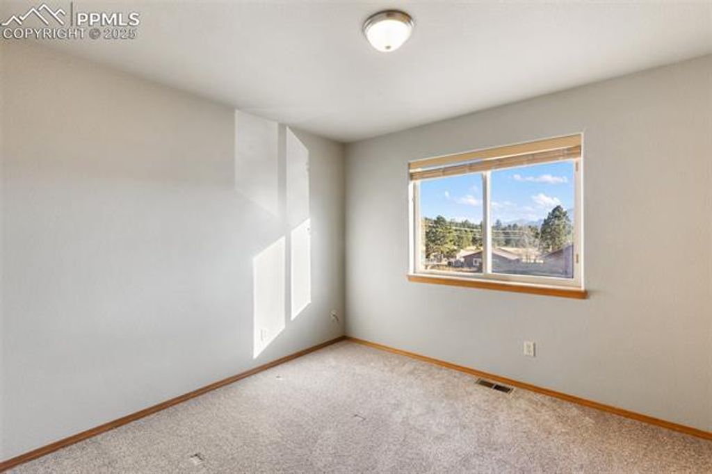 Did you know that Lovelll Gluch is just down the Road, and you are within Walking Distance to the National Forest. Then you get the Spacious 3-bedroom, 3-bath home on 1.79 level, fenced acres with a stunning Pikes Peak view! 2,168 sq ft with open living and dining areas, a functional kitchen - including a pantry. A large primary bedroom with an adjoining bath and double-vanity is ideal for morning or nighttime routine. Two bedrooms across the hall allow for little ones to be close with their own space. The finished lower level offers flexible living space. An attached two-car garage provides ample space for storage or other hobbies. Enjoy the deck and yard, which provide plenty of space for entertaining, pets, or gardening. Located within walking distance to schools and just minutes from shopping, dining, and all town amenities. This is a great opportunity to enjoy peaceful, spacious living with in-town convenience!