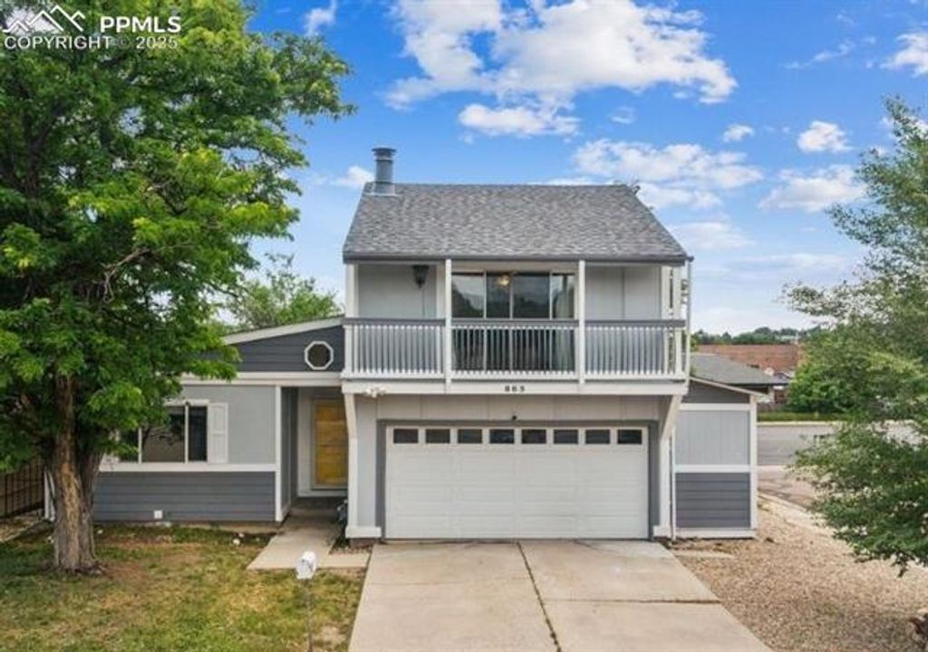 This thoughtfully laid-out 3-bedroom, 2-bath home sits on a sunny corner lot near Quail Lake, Cheyenne Mountain, and Fort Carson. Inside, you'll find laminate floors, two fireplaces, and a main-level living room that flows into a functional kitchen with all major appliances included. The primary bedroom offers generous closet space, an attached bath, and a skylit dressing area. Upstairs, the loft opens to a private balcony"”great for plants, reading, or unwinding. The lower living room leads out to a fenced yard and deck, offering space to relax or entertain. A newer A/C unit, forced air heating, laundry closet with washer and dryer, and attached 2-car garage round out the home's conveniences. Conveniently located near shopping, dining, parks, and trails, this home offers both comfort and accessibility in one inviting package.