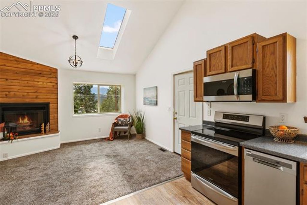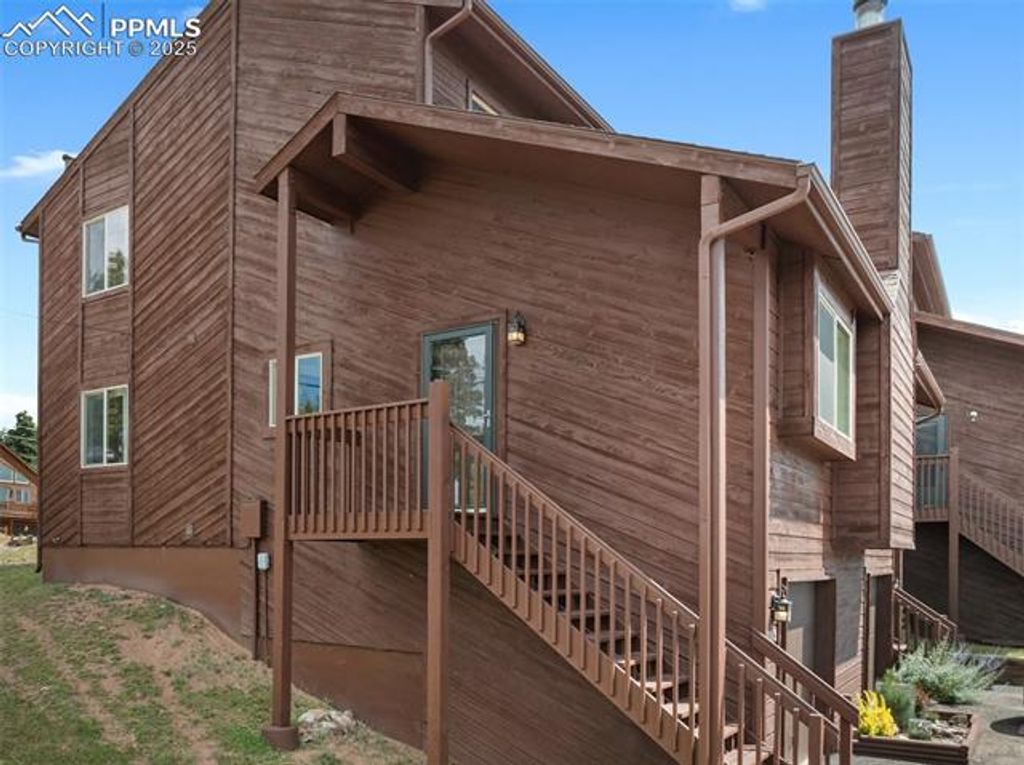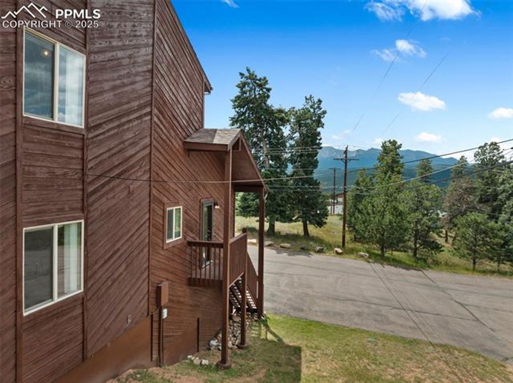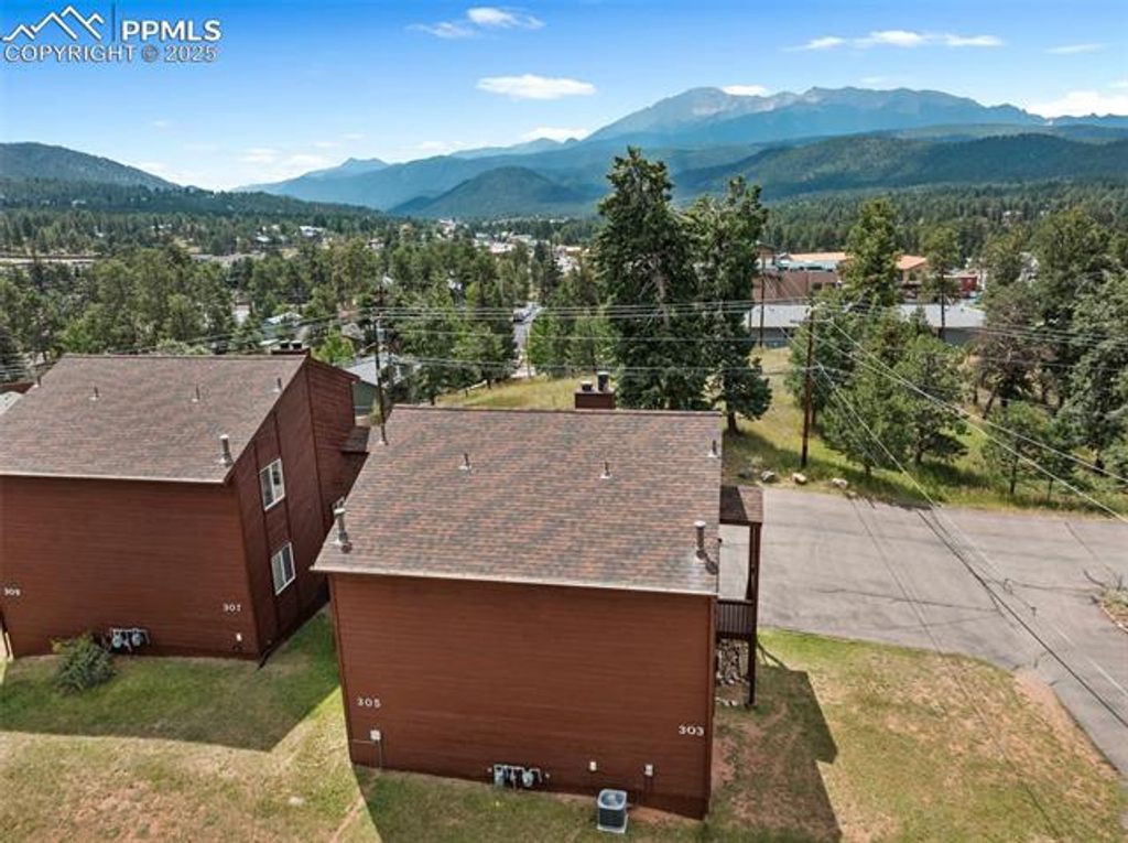 Move-in ready townhome with stunning views! Welcome to your dream townhome in the heart of Woodland Park! Nestled centrally amidst all the charm this vibrant town has to offer, this meticulously maintained property is perfectly positioned near shops, parks, and delightful dining options. This home is completely move-in ready, boasting a pristine and squeaky clean interior that welcomes you with open arms. Enjoy an inviting living area bathed in southern exposure sunlight, complete with breathtaking Pikes Peak views. Imagine cozy evenings by the fireplace, creating the perfect blend of comfort and elegance. The main floor features a spacious bedroom and a full bathroom, providing ease of access and versatility for guests or family members alike. Ascend to the loft-style primary bedroom upstairs, where you'll find stunning Pikes Peak vistas and enchanting nighttime city views that will take your breath away. This space is a serene retreat, ideal for relaxation and unwinding. The property includes a one-car garage along with two additional exterior parking spaces - a rare find in this prime location! Enjoy the benefits of a new furnace complete with a humidifier, brand-new appliances in the kitchen and bathrooms (upgraded in 2019), and central A/C added in 2020 to keep you comfortable year-round. Recent upgrades include a new roof and new windows installed in 2018, and a fresh exterior stain completed in 2023, ensuring the property not only looks beautiful but also remains functional and energy-efficient. This community features a lovely green space buffer that enhances privacy while preserving open space for residents to enjoy. Take leisurely strolls in the fresh air, or relax in nature's beauty right outside your door. This Woodland Park townhome is a rare gem that combines convenience, comfort, and stunning views all into one package. Don't miss the opportunity to make this beautifully appointed property your home! Schedule your private showing today.