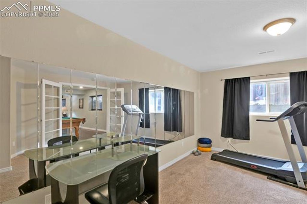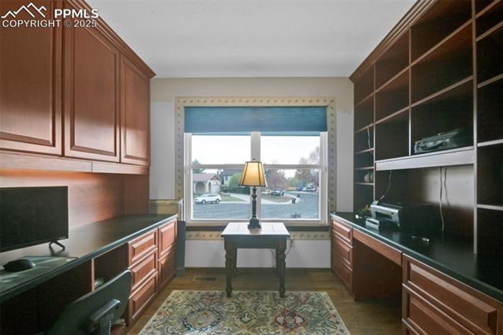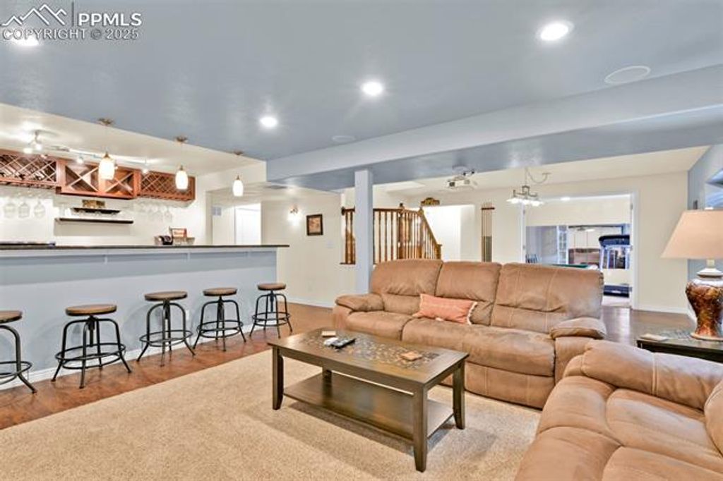Prime Colorado Springs Location Near the Air Force Academy! This stunning 3,974 sq ft two-story home with a full finished basement is tucked away at the end of a quiet cul-de-sac in a family-friendly neighborhood. Offering 5 bedrooms, 4 bathrooms, and exceptional entertainment spaces, this home is perfect for those seeking comfort and convenience. Move-in is a breeze with approximately 90% of furnishings included! Recent updates include fresh exterior paint (2024), updated flooring (2022), and removal of all popcorn ceilings for a modern look. The bright kitchen features a skylight, pantry, refrigerator, dishwasher, and two ovens"”ideal for hosting and everyday living. The main level boasts a cozy wood-burning fireplace, private office, ample storage, and washer/dryer that stay. Upstairs, the spacious primary suite offers a second wood-burning fireplace and a luxurious five-piece bath with jetted tub. Two additional bedrooms complete the upper level. The fully finished basement is an entertainer's dream with two bedrooms, a bathroom, full wet bar, theater area, pool table, and more"”perfect for movie nights or extended-stay guests. Step outside to enjoy the covered patio and hot tub for year-round relaxation. Additional features include central A/C, whole-home humidifier, security system, and generous storage throughout. Located minutes from I-25, the U.S. Air Force Academy, shopping, dining, and parks, this home delivers the ideal blend of space, style, and location. Don't miss your chance to own this incredible property in one of Colorado Springs' most desirable areas!