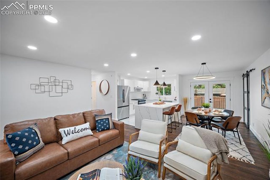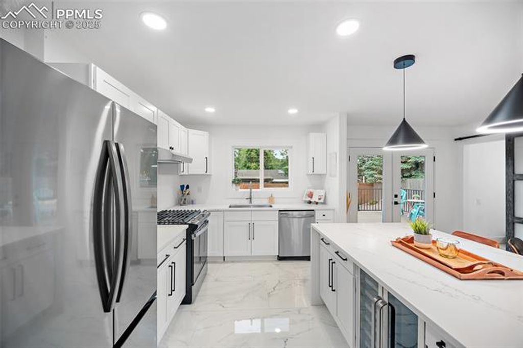 Welcome to your dream home! Thoughtfully reimagined and truly move-in ready. From the moment you arrive, the striking curb appeal sets the tone: new exterior stucco, energy-efficient Pella windows, lush custom landscaping, and a stamped and stained concrete driveway that blends beauty with durability. Step inside and experience a seamless open-concept layout that effortlessly connects the living room, chef's kitchen, and formal dining area -designed with everyday comfort and entertaining in mind. Richly refinished original hardwood floors add warmth and character, while an abundance of natural light showcases every elegant, designer-curated detail. At the heart of the home is a kitchen that is as functional as it is stunning. Outfitted with brand-new stainless steel appliances, a gas range, built-in wine fridge, premium Kraus sink, and a show-stopping 9-foot Calacatta quartz double waterfall island. This space is built for gathering, sharing, and memory-making. Open the French doors off the dining area to discover your brand-new 16-foot Trex composite deckperfect for morning coffee, evening grilling, or simply soaking up the Colorado sun. The fully xeriscaped backyard is both stylish and low-maintenance, featuring a privacy fence, RV/car parking, and custom double-hinge gates for easy access. A custom barn door leads to the main-floor laundry room, complete with a new washer, dryer, and water heater. Additional upgrades include a brand new air conditioning system and high-efficiency furnace, ensuring year round comfort and peace of mind. Down the hall, you will find three well-appointed bedrooms and a spa-inspired bathroom with a double vanity and custom-tiled walk-in shower, your private retreat to unwind and recharge. Every inch of this home has been designed with care, intention, and modern living in mind. This a reinvention of what home can truly feel like! Come see for yourself, you won't want to leave.