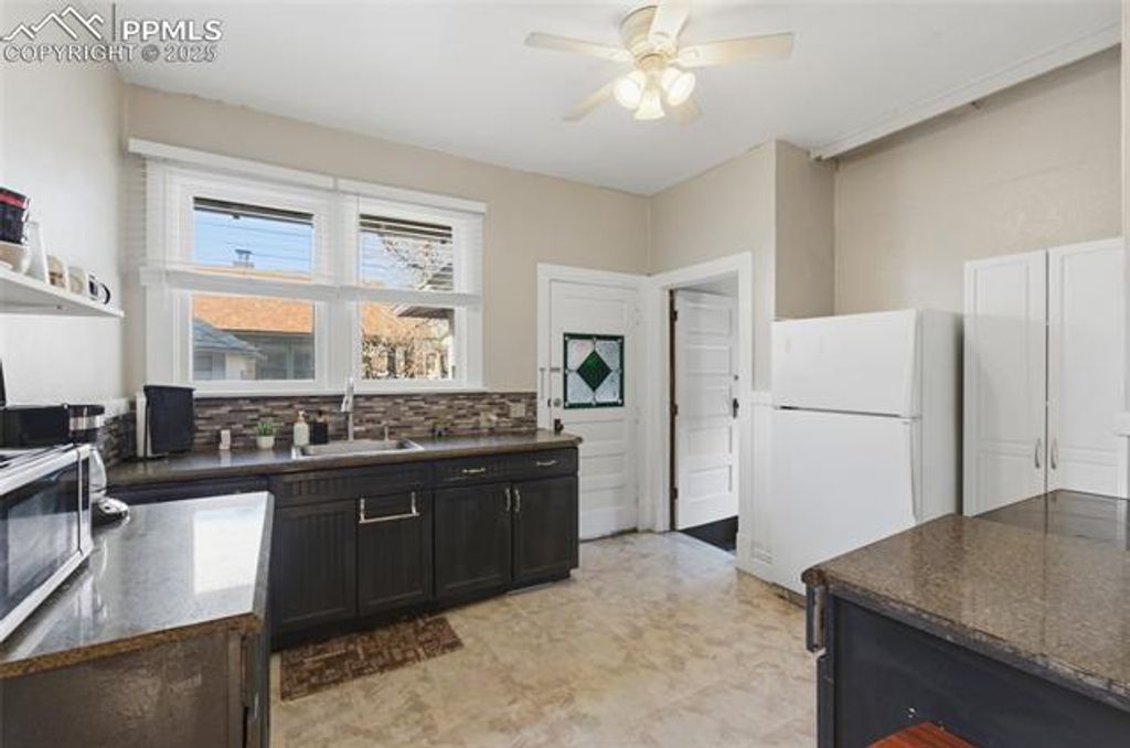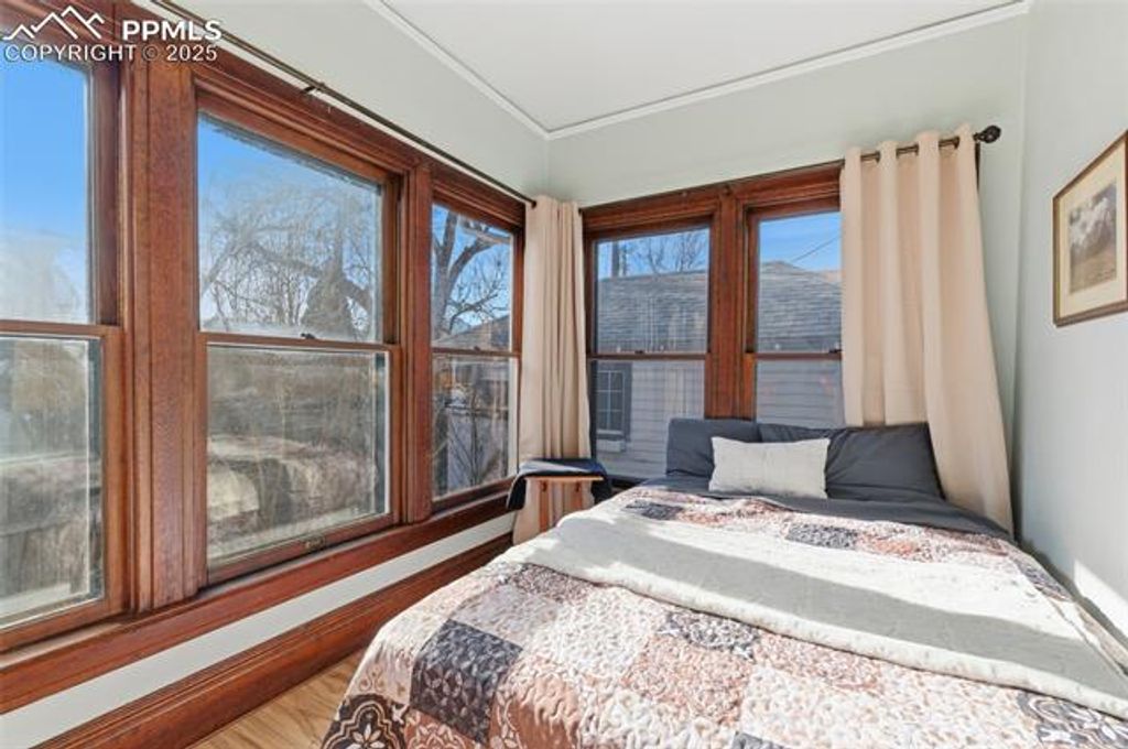 Discover this fully updated Craftsman Bungalow in the highly desirable Old North End"”just steps from Colorado College. Brimming with vintage charm yet enhanced with modern conveniences, this versatile property offers exceptional rental potential for students, traveling nurses, or Airbnb guests. Set on a corner lot with a welcoming front porch, this home features a spacious main level with two bedrooms plus a third non-conforming bedroom"”ideal for a wardrobe addition, home office, or art studio. The large living room showcases a natural stone wood-burning fireplace, while the dining room delights with an original butler's built-in featuring leaded glass, stained glass, and ample storage. The updated kitchen includes new flooring, countertops, and appliances, complemented by a mudroom with laundry and extra storage. The basement level offers even more flexibility with a private entrance, fenced yard, non-conforming bedroom, bathroom, and kitchenette"”perfect as an independent apartment for traveling nurses or long-term guests. A standout feature is the converted backyard garage, now a fully furnished studio space offering two spaces each with its own two bed, bathroom, butcher block countertops, and small kitchenettes. Enjoy a fully fenced yard, a flagstone patio, and plenty of off-street parking with an added rear parking space. Additional updates include a renovated bathroom, restored trim, new interior paint, and protective vinyl wood flooring installed over the original hardwoods. Whether you're seeking a charming home with character, a strong investment opportunity, or both"”this Old North End beauty delivers it all.