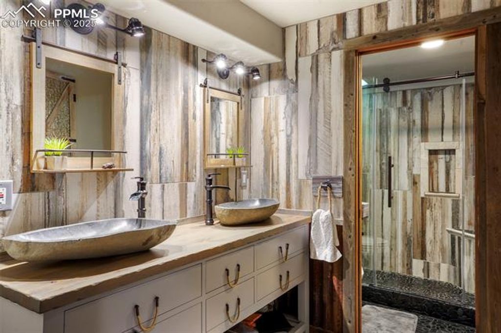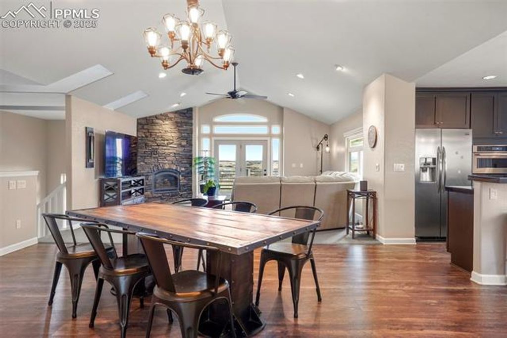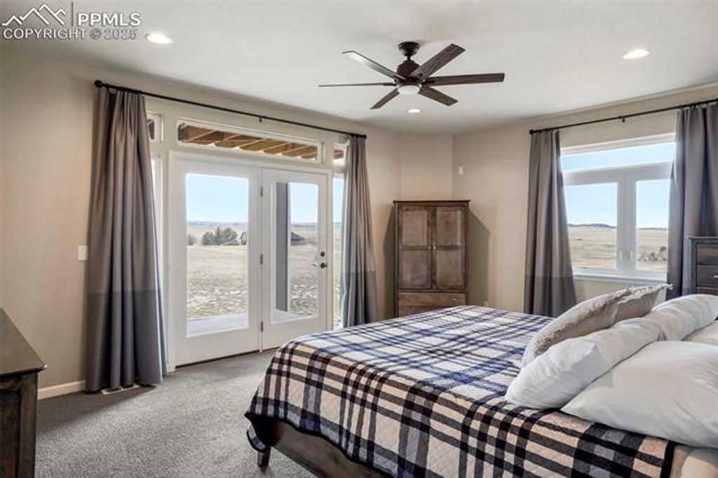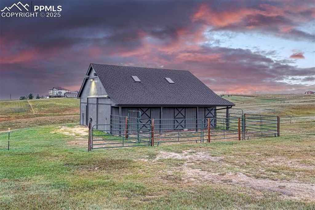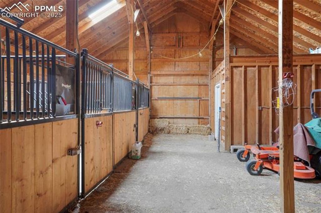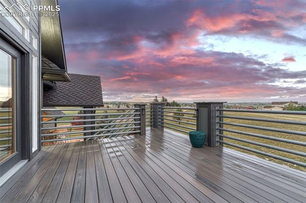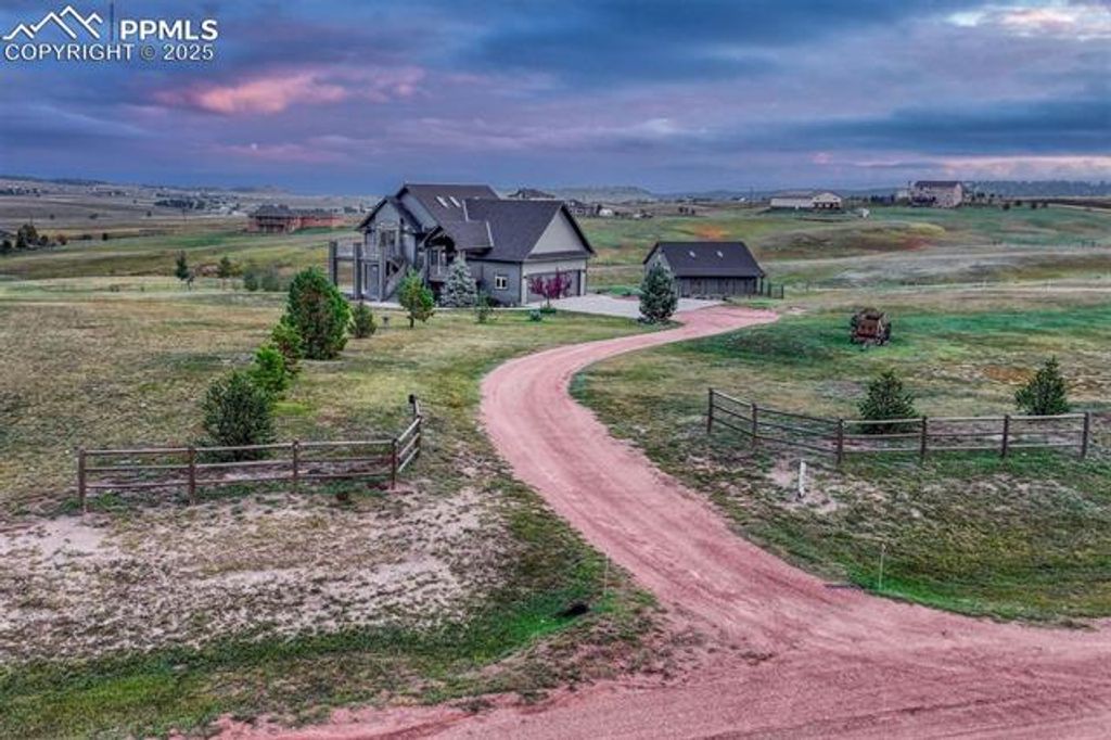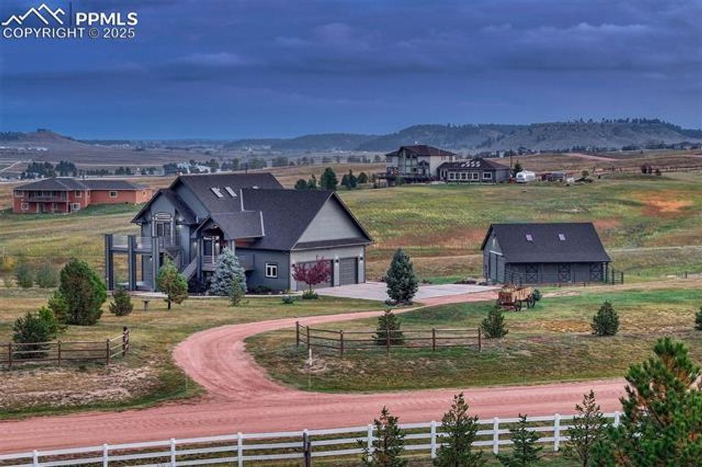 Custom built home with almost 4,000 square feet, spectacular mountain views and a 34x36 barn located in sought after Black Forest and situated on a sprawling 5 acre parcel on a quiet cul-de-sac providing you the perfect blend of privacy and convenience to amenities. Tremendous views of Pikes Peak, the front range and the rolling hillsides of Black Forest perfectly viewed from the multiple outdoor composite decks with metal railings. The home is well cared for and remodeled w/ new 5 ton AC, new furnace, new exterior paint, new composite deck, new 2,500 gallon septic system. 6 bedrooms, 4 bathrooms most bathrooms have heated floors and a 3 car garage. The great room is bright with large windows that perfectly frame Pikes Peak and provide an abundance of natural light. The great room has vaulted ceilings, a gas fireplace w/ stacked stone surround, walk-out to a deck. Open kitchen with granite counters, pendant lighting, a downdraft gas cook-top, shaker cabinets, breakfast bar, pantry, and newer oven and convection microwave. Two ensuite bedrooms. The expansive master bedroom has a private walk-out, a walk-in closet and a 5 piece bath w/ a spacious shower w/ dual showerheads. The lower level family room is styled as a theater room with sound dampening ceiling, black out reclaimed wood shutters with metal accents. Amazing home gym room with tons of space and could be used for multiple purposes including a bedroom. The 34x36 barn has water, electric, 3 Priefert stalls, a hay storage area and tack room. Zoned for horses, allowing you to indulge in your equestrian passions. Class 4 impact resistant 50 year high end roof. The garage is a show piece - it is oversized finished, insulated, painted and has upgraded electrical. Award winning School District 38. Only 45 mins to Denver or 15 mins to Colorado Springs. Fantastic access to I-25 and Highway 83. Commercial marketing video and Matterport virtual tour available.
