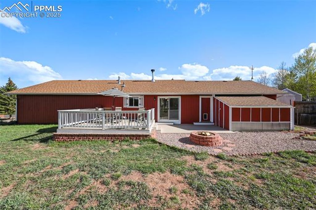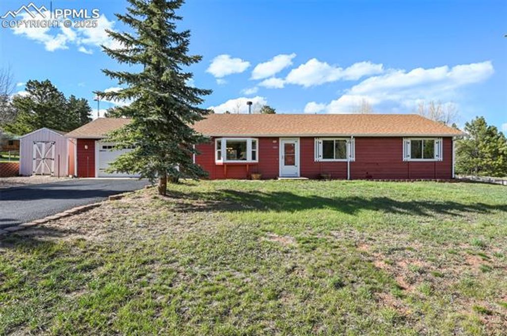 Tucked away on a quiet cul-de-sac and sitting proudly on a corner lot, this move-in-ready home blends comfort, convenience, and thoughtful updates throughout. Step inside to find main level living at its best, with brand new carpet underfoot and hardwood floors flowing through the entry, kitchen, and dining area. Vaulted ceilings add a spacious feel, while the wood-burning stove creates a cozy focal point perfect for cooler mountain evenings. The kitchen comes equipped with brand new appliances and connects seamlessly to the dining space, ideal for everyday meals or entertaining. Each bedroom features custom closet systems, maximizing organization and storage. Out back, a fully fenced yard offers space to relax, play, and gather. Enjoy evenings around the firepit, and take full advantage of the two-tier composite deck"”perfect for creating distinct entertaining zones, whether you're hosting dinner or lounging under the stars. Two storage sheds add convenience, and RV parking ensures space for your toys or trailers. The oversized two-car garage is a hobbyist's dream, complete with built-in cabinetry, a workbench, and extra space to spread out. With fresh exterior paint and a brand new driveway, this home offers curb appeal and peace of mind. Located just minutes from Meadow Wood Sports Complex and downtown Woodland Park, this home checks all the boxes for comfort, practicality, and location.