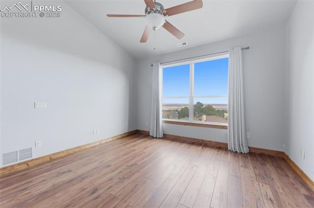 Beautifully designed custom home offers the perfect balance of comfort, convenience, & mountain style*Surrounded by mature pine trees & scrub oak, boulders, wildlife & natural beauty*Rare property that is both nestled against Cheyenne Mountain & offers a large, flat yard w/ample space for entertaining, children & pets*.60 of an acre*Breathtaking views from covered front porch, large rear trex deck w/pergola & covered patio*Low maintenance stucco exterior, tile roof & higher end windows*8 ft solid doors, 9 ft.+ ceilings throughout*Well thought out floor plan, generous living spaces, expansive windows & sunlight interiors w/mountain or city views from every window*All bedrooms w/walk-in closets & bathrooms w/higher vanities*Dramatic 2 story foyer, spiral staircase, travertine floors & wrought iron railing*Wider plank hardwood floors extend through the living & dining rooms, kitchen, nook, stairs & upper hall*Main level study/den/play w/glass French doors, built-in desk, cabinets & beamed ceiling*Spacious formal living & dining rooms*Custom gourmet kitchen w/granite counters, breakfast bar, maple cabinets & newer appliances, oversized nook & walkout to deck*Family room w/wall of windows & gas log fireplace*Upper level features 3 bedrooms, 2 baths & laundry*Light filled primary suite w/fireplace, sitting area, walk-in closet & 5 piece bath w/dual headed & enclosed shower*Vaulted secondary bedrooms w/views share full bath*Oversized laundry w/sink, hanging rack, & closet*Walkout lower level w/9 ft. ceilings is perfect level for entertaining, guests & teens. Expansive rec room w/floor to ceiling windows & 3 sided gas fireplace. Ample space for pool table, entertainment area, game/hobby area, wet bar w/space for full sized refrigerator & built-in bookshelves. Spacious 4th bedroom with oversized windows & walk-in closet. 3/4 bath. Storage area*Oversized & finished 3 car garage with shelves, workbench & a service door*A/C, dog electric fence*Sought after school district 12*