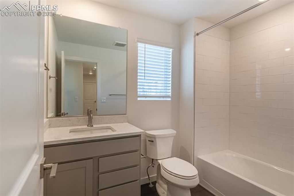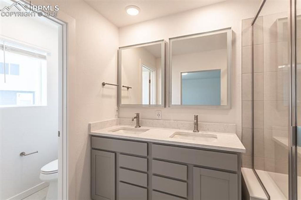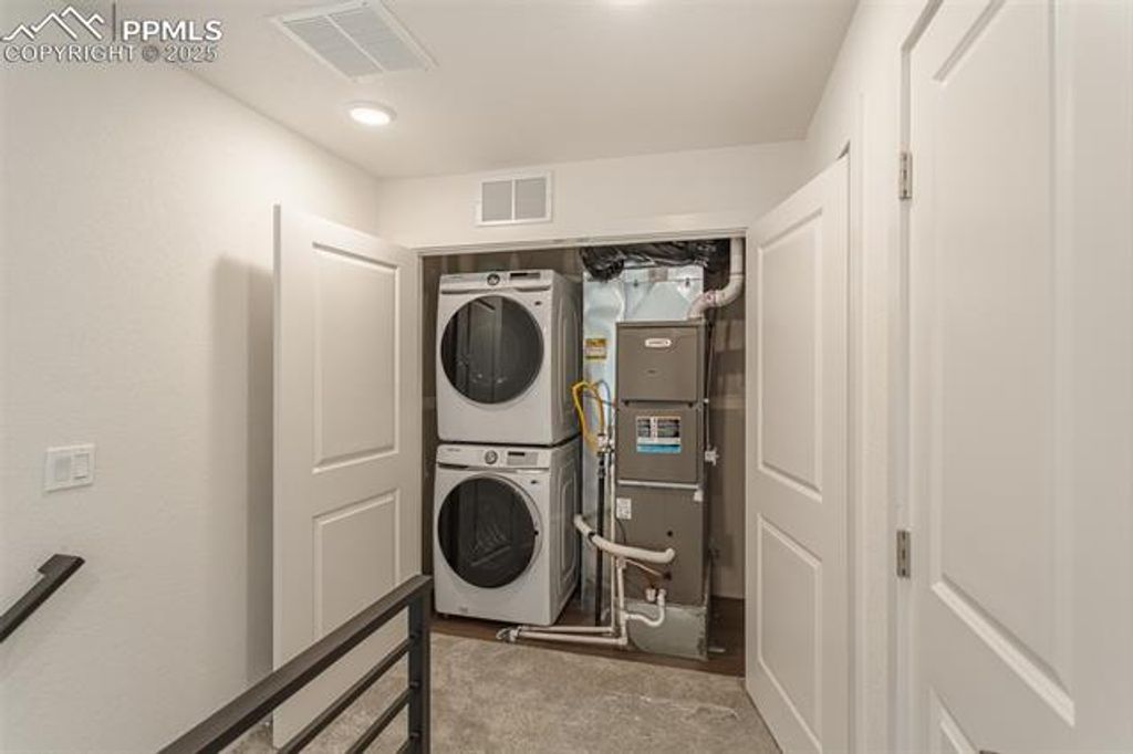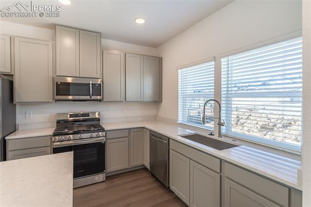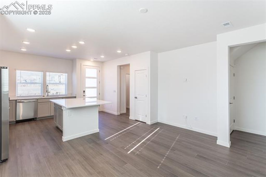 Ready for move-in, the popular new Conrad floorplan brings 1,349 square feet of thoughtfully designed living space across two stylish stories. Featuring 3 bedrooms, 2.5 bathrooms, and an attached two-car garage, this popular layout blends everyday convenience with elevated finishes. Step inside to an expansive kitchen that flows seamlessly into the open great room, perfect for effortless entertaining and comfortable living. The kitchen showcases Samsung stainless steel appliances, a spacious center island, quartz-style countertops, and warm wood-toned cabinetry from the sophisticated Telluride interior color package. Upstairs, the private primary suite offers a large walk-in closet and a luxurious en-suite bathroom featuring dual vanities, a walk-in shower, premium Kohler fixtures, and lighted mirrors with adjustable color settings for an added touch of luxury. Two additional bedrooms, a full secondary bathroom, and a conveniently located laundry room complete the second floor, creating a smart and functional living experience. Enjoy high-quality Shaw flooring on the main level and plush, water-resistant carpeting upstairs, balancing style and durability. Smart home features like a Ring video doorbell and a smart garage opener with built-in video capabilities add extra convenience, security, and peace of mind. Located in The Vistas at West Mesa in Colorado Springs, the Conrad offers easy access to Garden of the Gods, Pikes Peak, UCCS, downtown amenities, and major military bases including Fort Carson, Peterson, and Schriever Air Force Base. Don't miss your chance to own one of our most popular new designs, where elevated finishes and modern functionality come together perfectly.