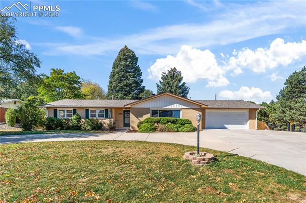 Mid-Century Modern Ranch in Stratmoor Hills - Spacious Lot, RV Parking & Timeless Style! This home sits on an expansive, private lot surrounded by mature trees, featuring a large circular driveway and dedicated RV parking"”perfect for those who love space, privacy, and Colorado adventure. Inside, you'll find 3 bedrooms and 2 bathrooms, including a primary suite with an en-suite bath for added comfort and convenience. The single-level, no-stairs layout makes daily living effortless, while the home's original mid-century design"”with clean architectural lines, large windows, and abundant natural light"”adds charm and character. Refinished hardwoods throughout the home, as well as 2 wood burning fireplaces and central air conditioning round out this beautiful home. The oversized two-car garage offers plenty of room for vehicles, tools, and storage, with additional space for hobbies or a workshop. Out back, enjoy an expansive, fully private yard"”ideal for entertaining, gardening, or simply relaxing in your own quiet retreat. With strong bones, a large lot, and a classic mid-century aesthetic, this gem is ready for your personal touch. Whether you're drawn to its vintage character or excited by its renovation potential, this is a rare find offering space, style, and endless possibilities.
