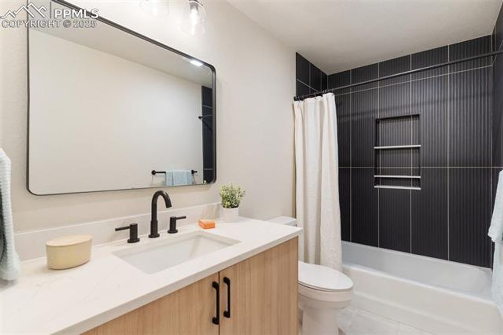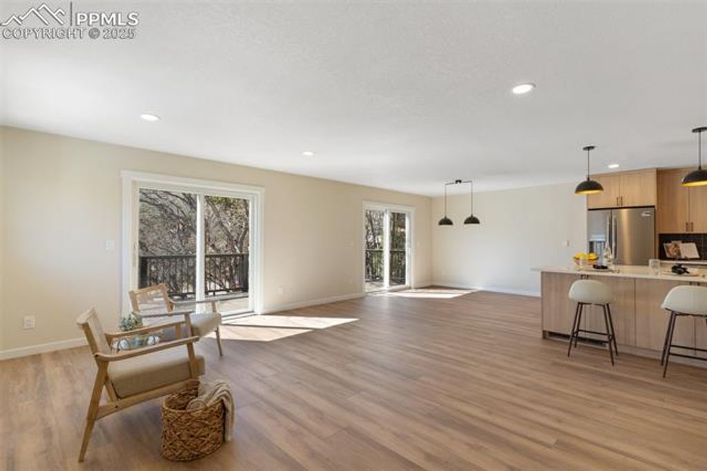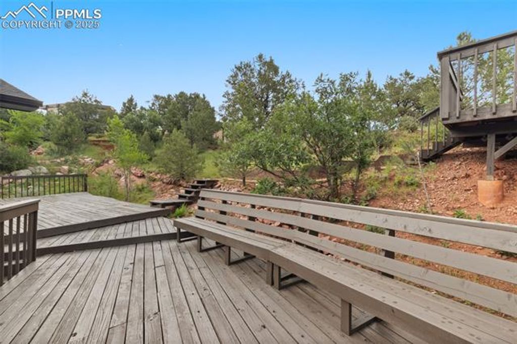 This gorgeous, completely renovated 5-bedroom, 3-bathroom home is perfectly located within walking distance of Garden of the Gods. The open floor plan showcases a beautifully designed kitchen with custom cabinetry, quartz countertops, a stylish tile backsplash, and a large center island with counter seating, making it ideal for both cooking and entertaining. The primary suite is a private retreat featuring two closets and a spa-like bathroom with an oversized shower and double sink vanity. Enjoy breathtaking mountain views from the front deck, perfect for morning coffee or evening sunsets. The terraced backyard deck provides an ideal space for barbecues and outdoor gatherings. A rare combination of modern elegance, prime location, and stunning scenery, this home is a must-see.
