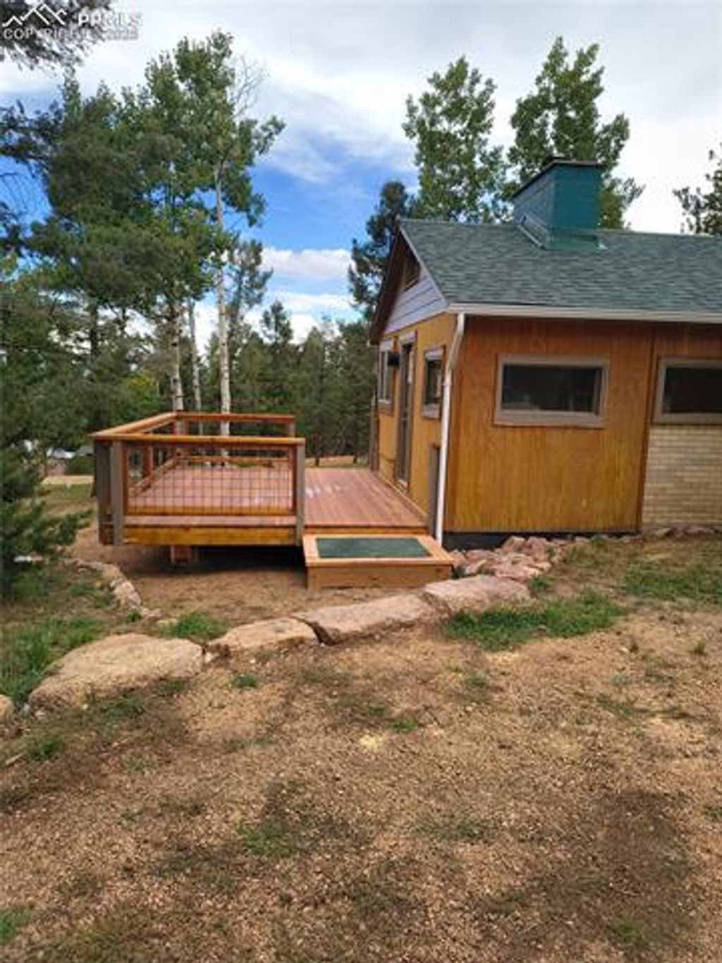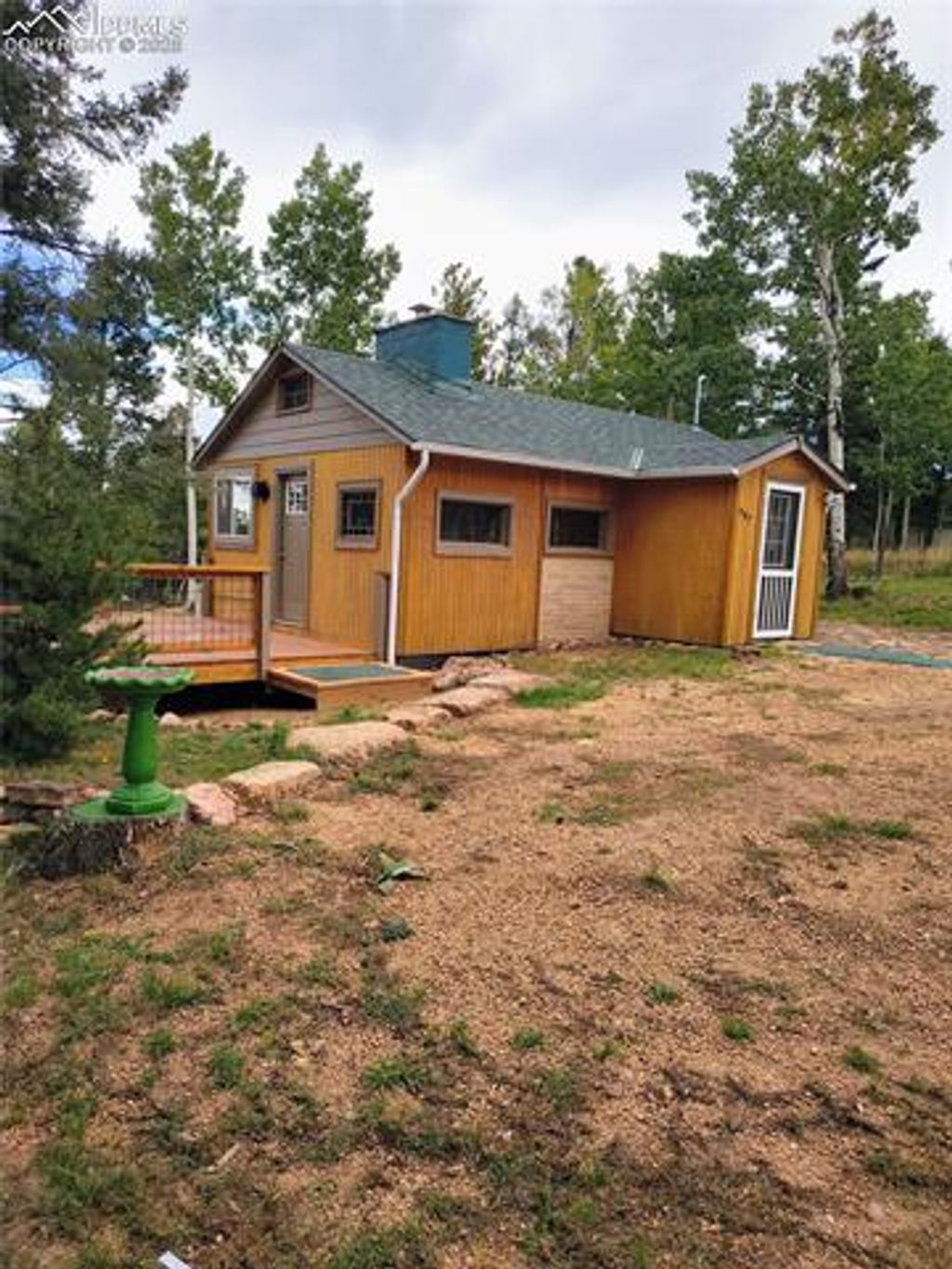 Welcoming Cottage in the Woods: Located on quite 3 resident cul-de-sac, nestled among mature trees; Perfect Tiny home, Week-end/Vacation Getaway. Single story cottage with sleeping loft -- Recently updated: Living Room - Full Kitchen Open Concept 11.6 X 15.10 , Fireplace with Wood Burning insert, Dining Nook 7 X 6 , 1 Bedroom 8 X 7.6, Sleeping Loft 5 X 8, 1 Full Bathroom 6 X 8, Bonus Room 60 sq ft, Outdoor Storage Shed 12X8, Knotty pine walls in Living Room/Kitchen and Bedroom. Large Deck just waiting for entertaining guests, or just a quiet morning with a cup of coffee, watching the deer and wildlife and enjoying the outdoor beauty. Recent updates: New genuine redwood 12 X 16 deck with side entrance to cabin. Interior; Kitchen new stainless-steel stove and refrigerator, granite countertops, granite eating bar with stools, situated in nook right off kitchen. Close to entrance to the deck. Bathroom, newly tiled shower with bathtub. New genuine hickory floors in Kitchen, Living Room, and Bedroom. New Carpet in Bonus Room. Exterior: New Shingle Roof, Newly painted exterior trim, wood siding sealed. Updated Electrical Service 2021. Plenty of room for parking your RV. This property is accessible to VA-eligible buyer offers and the seller is open to discussing seller-carried terms (OAC). Nearby Amenities: Outdoor Recreation: Nearby, 1/2 mile access to Pikes Peak National Forest at the end of Blossom Rd., which offers miles of OHV (Off Highway Vehicles, i.e. ATV's, dirt bikes, etc.), trails. Hiking, Biking, Cross-country Skiing, and Hunting. Shopping: Woodland Park: Walmart, Walgreens, City Market, Safeway, Woodland Hardware and Home, Colorado Building Supplies. Dining Out: A variety of dining Cuisines available, Restaurants with dine in or carry out and Several Fast Food restaurants to select from. Medical, Pikes Peak Regional Hospital.
