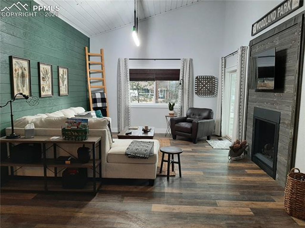 Looking for that Just Right feeling in a home. This is it! Ideal for just you or more in this two bedroom home in the center of Woodland Park. Close to everything in shopping and just a few feet from the Woodland Park Walking Trail right outside your door. This Just Right home is a former Air BNB is completely remodeled with features and style not commonly found in most homes. The great room is large and comfortable with vaulted ceiling for an even larger feel. Relax in the evening and take in a movie or just enjoy the cozy in wall fireplace The Kitchen is a cooks dream with all new appliances, granite counters, luxury vinyl plank flooring. Two bedrooms are remodeled with new finishes and luxury vinyl flooring. The bath has a large walk in shower and luxury vinyl flooring. Laundry is off the hall with ultimate convenience. No stairs in this easy living Just Right home!