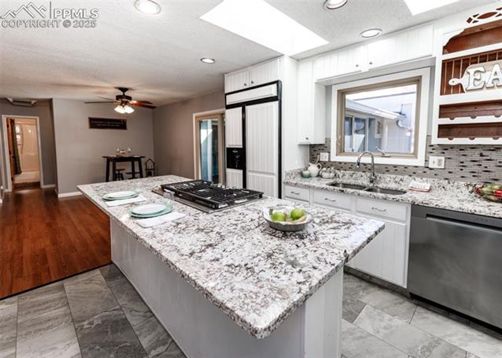Low maintenance single family home located just moments to Fort Carson, Cheyenne Mountain, I-25 and more, walking distance to shopping, public transportation and schools. This ranch style home has ample space with open concept main level, featuring kitchen with large island with gas range, updated kitchen appliances, granite counter tops, tile flooring through out the kitchen, spacious living room with wood burning fireplace and dining room. On the main level there are 3 bedrooms to include the owners suite with private on suite bathroom, additional full bathroom also on the main level. The home also has a bonus sun room on the back of the home. Fully finished basement with huge living space and additional bedroom and bath, no carpet in the basement. The back outdoor space has turf for additional low maintenance, and a cozy back yard space. In addition the home has a 2 car garage. This home is close to downtown Colorado Springs, hiking spots such as Seven Falls, Helen Hunt Falls, and the Cheyenne Mountain Zoo.