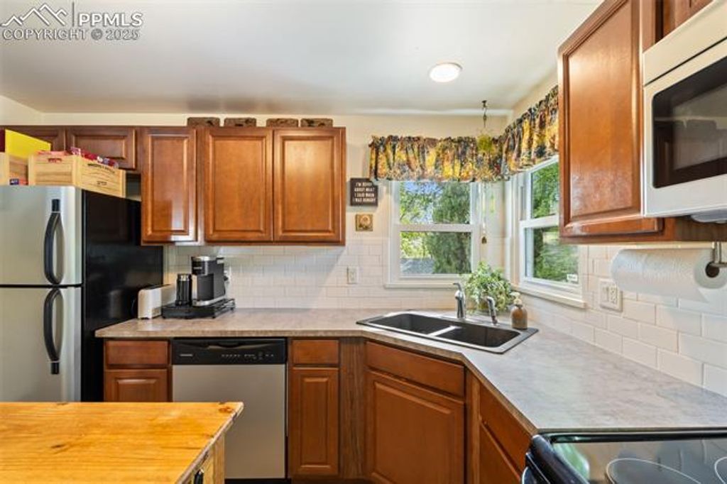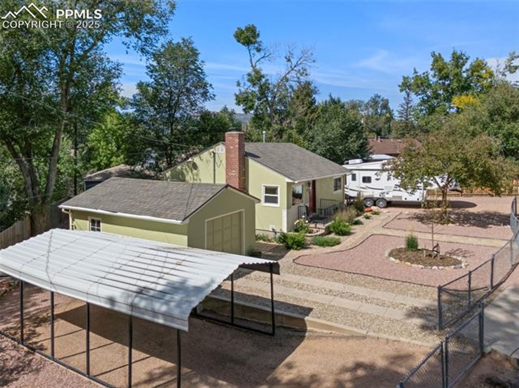 Welcome to this charming Westside Colorado Springs home, tucked away on a quiet cul-de-sac with minimal traffic. This well-maintained property features a low-maintenance stucco exterior and a beautifully xeriscaped lot with mature trees. The home offers unique parking options including a one-car detached garage with opener, RV parking along the side, plus additional covered parking for two more vehicles. Inside, the updated kitchen boasts stainless steel appliances, and the warm hardwood floors flow throughout the main level. The living room includes a cozy fireplace with electric insert, while the washer and dryer on the main level are included for your convenience. A fenced yard provides privacy and outdoor enjoyment, and the basement offers ample storage space. Major systems are in great shape with a young roof, furnace, and central A/C. Just minutes from downtown Colorado Springs, Garden of the Gods, Manitou Springs, and an easy bike ride to Old Colorado City"”this home combines comfort, practicality, and location all in one.