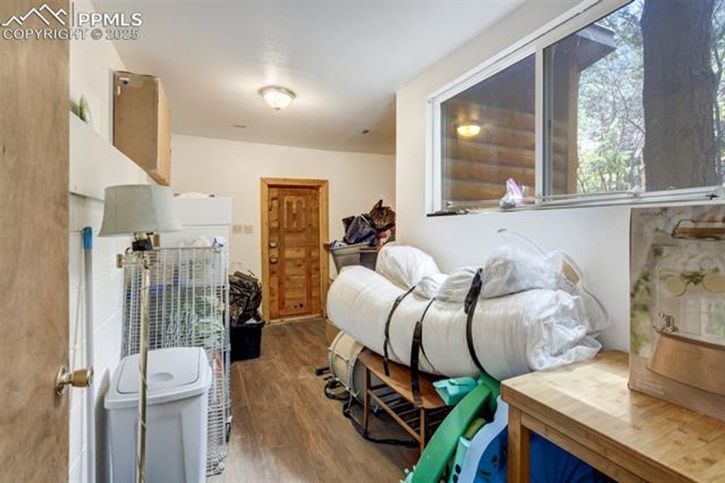 Nestled among the trees in the heart of Cheyenne Canyon, this charming 2-bedroom, 1-bathroom log cabin offers a rare blend of rustic character and tranquil living. Set on a beautifully treed lot with the soothing sounds of a nearby creek, this home invites you to unwind and connect with nature. Step inside to find a cozy living room featuring vaulted ceilings, skylights, concrete floors, exposed log beams, and a wood-burning fireplace"”perfect for chilly Colorado evenings. The partially renovated kitchen includes a new gas stove/oven and provides a solid foundation for your own personal updates. The primary bedroom offers a unique bonus space that can serve as a sitting area, office nook, or walk-in closet. The second bedroom is truly a treehouse-style sanctuary, surrounded by windows on three sides for a 260-degree view of the natural beauty outside and abundant natural light throughout the day. The updated bathroom features a dual vanity, newly tiled walk-in shower, a classic clawfoot tub, and built-in storage for linens. Additional highlights include: mini-split A/C system for year-round comfort, covered carport that doubles as a workshop area, private neighborhood access to hiking trails, close proximity to Helen Hunt Falls, Seven Bridges, North Cheyenne Cañon Park, and outdoor recreation opportunities galore. Whether you're looking for a full-time residence, a peaceful weekend getaway, or an investment with charm and character, this property offers endless potential to make it your own mountain retreat.