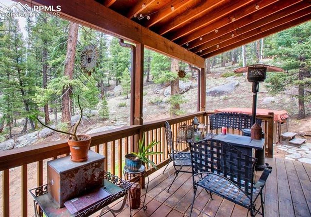 Located in Florissant, this 4 bedroom, 3 bath cedar-sided home is nestled on a half acre and is surrounded by pine trees and rock formations. Large picture windows for scenic views with plenty of room for RV parking and room to build a garage. Spacious kitchen, dining and living areas. The master suite offers a walk-in closet and 5-piece bathroom plus access to the covered deck. Situated in a private, friendly community only minutes from outdoor recreation destinations like Pike National Forest and 11 Mile Reservoir.