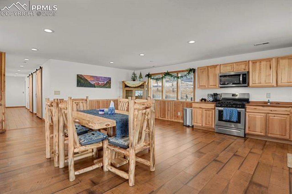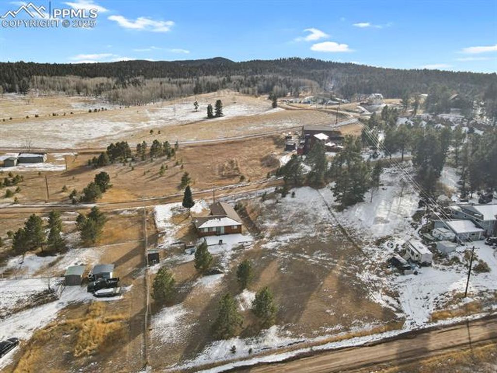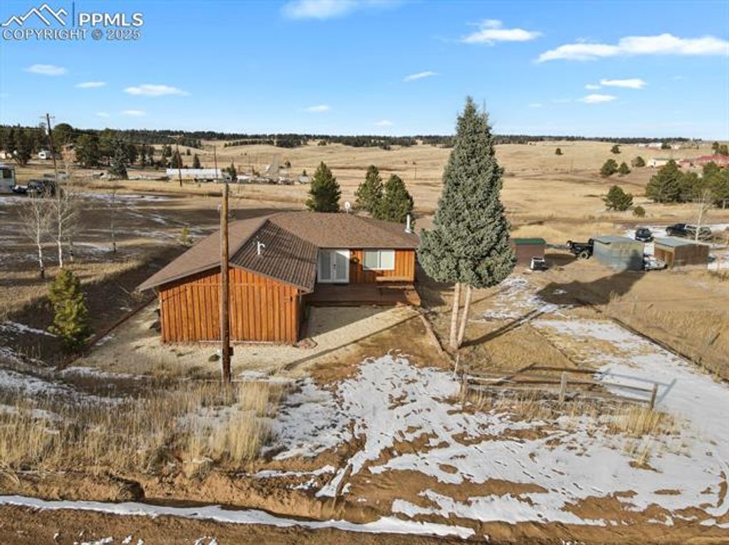 You are sure to be impressed by this beautiful open concept home that feels like a Colorado mountain sanctuary and features unbelievable views of Pikes Peak. This home has been extensively remodeled to include an addition and a complete gut and remodel of virtually every room in the home. The great room features a Douglas Fir ceiling and wood wall coverings along with a wood burning stove with an impressive flagstone surround and hearth. The kitchen has all new cabinets, butcher-block countertops, stainless steel appliances and a gas range. The bathroom features all new cabinets, countertop, and toilet along with an oversized 3-zone shower for some serious relaxation and rejuvenation. The home has new vinyl windows, custom interior barn doors, new light and plumbing fixtures and new interior paint throughout. The exterior features newer natural wood siding, a large front deck (12x20), a huge gravel patio off the back, 2 small sheds, and over 100 tons of rock has been laid for the driveway. There are pines and aspen and fields of mountain meadow grasses surrounding the property along with views in every direction. This home has been so meticulously remodeled and updated to such an extent that it's original house and garage structure aren't even recognizable. It is centrally located with great year around access, enjoy local shopping, dining and outdoor activities in Florissant, Cripple Creek, Divide and Woodland Park, CO. as well as some of the best outdoor activities Colorado has to offer including great Hiking and Skiing. Gold Medal Fishing in the Dream Stream, Spinney Reservoir, 11 Mile Reservoir, and the South Platte River, Pikes National Forest, Mueller State Park, and the Crags are very nearby. Colorado Springs is less than an hour away and less than two hours to Denver, CO. The house is located on a school bus route so the road is always very well graded with snow removal.