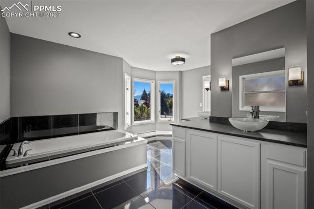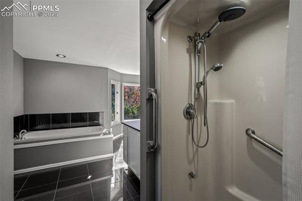 Beautiful stucco 2-story in coveted Gleneagle/Northgate and District 20! This quiet retreat sits on a spacious lot on a cul-de-sac and backs to open space, offering a peaceful and private rear yard. A rare main-floor primary suite provides convenience and privacy. Inside, you'll find a spacious main-level office and a formal dining room with bay window views. The upgraded kitchen features modern finishes, granite countertops, refinished cabinetry, a newer sink and faucet, under-cabinet lighting, pull-out drawers, a gas cooktop island, and a full wall of pantry space. The remodeled 5-piece master bath is a luxurious retreat. Approximately 1,200 sq. ft. of bamboo flooring spans the main level, while the laundry and half bath feature new porcelain tile floors. Some newer carpet with upgraded pad adds comfort, and the walk-in master closet includes a custom organizer system. The open family great room is perfect for entertaining with a cozy fireplace, and a pool table that stays. Newer Samsung mini-split heating and cooling systems on the main level offer added efficiency. Upstairs bedrooms are generous, each with bonus attic rooms for extra storage or hobby space. The oversized, heated 3-car garage includes high ceilings, is fully sheet rocked with added lighting, and has a workshop area plus a convenient dog kennel with outdoor access. A full-length crawlspace offers excellent storage. Radiant heating keeps things cozy in winter, and an attic fan cools the home on summer nights. Step outside to enjoy the large patio, gazebo, hot tub, and quiet open space views. The home is surrounded by mature trees and xeriscaped landscaping that enhance curb appeal year-round. Located minutes from the Air Force Academy, I-25, top-rated schools, golf, trails, shopping, dining, and medical facilities"”this home blends tranquility with convenience. Colorado living at its best!