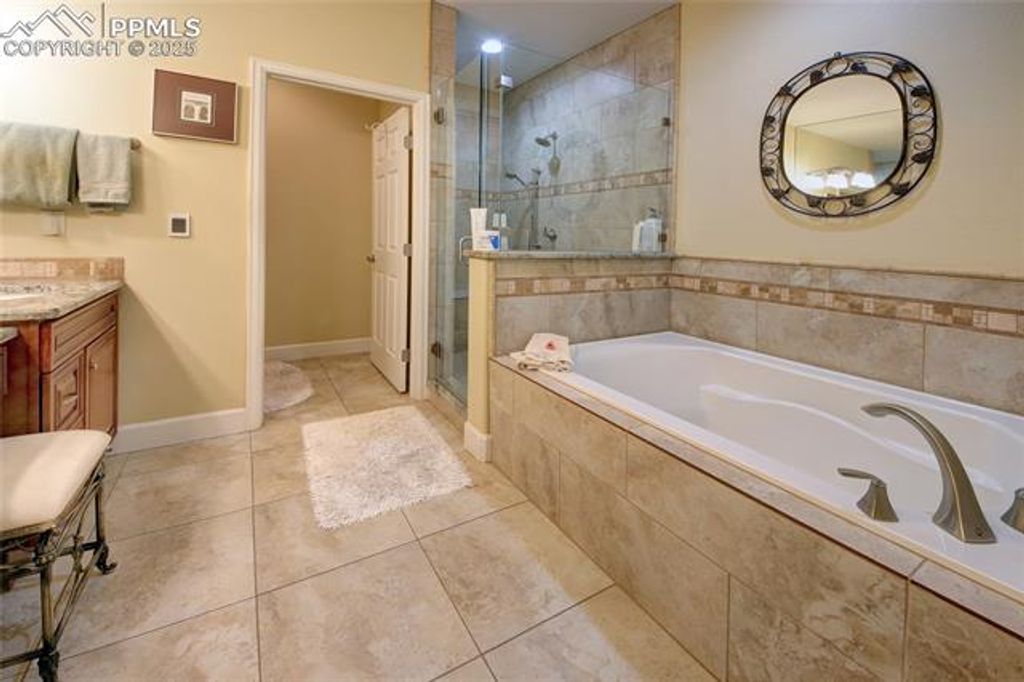 Welcome to this stunning west-side stucco home that has absolutely gorgeous views of the mountains AND night lights of the city plus it offers maintenance free living! It has tons of upgrades and is just minutes away from Old Colorado City, downtown and I-25. Walk through the front door into the beautiful great room featuring lovely wood floors, vaulted ceilings, a gas fireplace and floor-to-ceiling windows to help bring the outside in! The kitchen features granite countertops, stainless steel appliances, gas stove, custom cabinetry and a walk-in pantry. The large deck off the living room is the perfect place to entertain with a BBQ as it features unbelievable views of the mountains (including Pikes Peak and Cheyenne Mountain) and the city! The master bedroom is conveniently located on the main level. It features a large walk-in closet and a beautiful 5-piece bathroom with heated floors, makeup vanity, soaking tub and stand-alone walk-in shower. Also on the main floor is another bedroom (currently being used as an office) and a 1/2 bath (powder room). The nice sized laundry room leads out to the huge grassy backyard that is fully landscaped with a covered porch and hot tub. The lower level includes a beautiful, large family room with a gas fireplace, two more bedrooms and a full bathroom. A cute little hide-a-way under the steps is set up as a perfect children's private hideout. Plantation shutters complete the entire lower level. This is the largest backyard in the complex with nearly a 1/4 acre, perfect for children and pets. The hot tub and patio furniture stay. Bring your buyers by and watch them fall in love with this beautiful home!!
