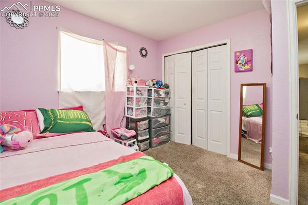 This bi-level home sits on a large corner lot with mountain views and is convenient to shopping and restaurants with easy access to Fort Carson and Peterson AFB. on the upper level, you'll find a living room, kitchen with eat-in dining, 2 bedrooms and a full bathroom. On the lower level, enjoy a family room and 2 additional bedrooms with another bathroom. New air conditioner 2023.