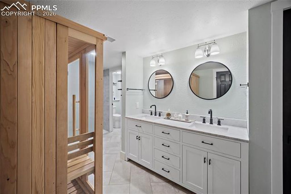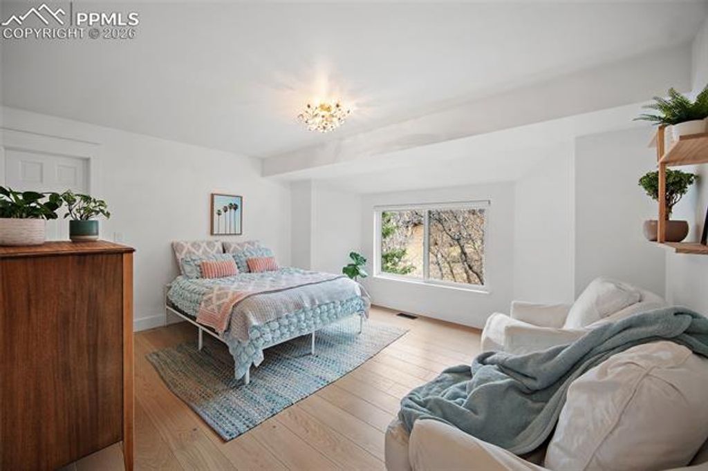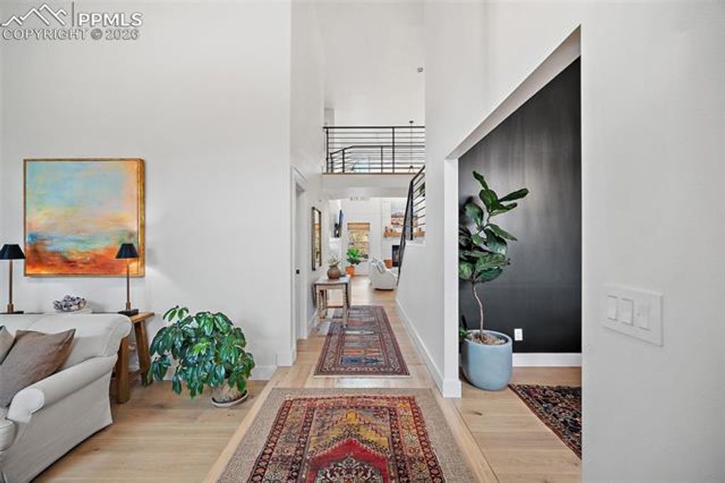 Contemporary showstopper lovingly brought to vibrant life offers a transformative living experience of style and comfort. There isn't a surface that hasn't been touched in this comprehensive renovation inside and out. Dramatic main-level living spaces with palatial ceiling heights and a soaring fireplace blend with a calm and homey atmosphere that make it feel as though you've nested in a work of art. Bright and inviting, you'll want to stay in the gorgeous front parlor, but the entrance draws you in to an open floor plan that leads to an endless chef's kitchen with breakfast banquette for morning coffee or intimate get-togethers with a close friend. The formal dining room has been reimagined into a space of tranquility and class. A main-level master suite brings into the picture a five-piece bath with iron tub and Carrera marble tile. Upstairs, enjoy the views below from the airy landing, which leads to three spacious bedrooms, one en suite, and a second hall bath, all of which have been updated to modern expectations. Downstairs is a whole other world: a cozy family room with a second fireplace, a large wet bar for entertaining that lies just inside from a hot tub, a suite of two exercise rooms, an office/craft room, and a secluded guest suite with a bath that would be the pride of the home anywhere else, including a sauna. Outside, the home has new paint and a new roof in 2025, and the length-of-the-house deck has been replaced with composite decking. Xeriscaped landscaping makes yard maintenance easy. With a four-car tandem garage complete with RV parking, a large pantry and main-level laundry, the home has all the extra conveniences that make this home complete. Tucked on the slopes of upper Skyway with a trailhead just around the corner and Bear Creek Park just down the hill, the location is ideal for outdoor activities.