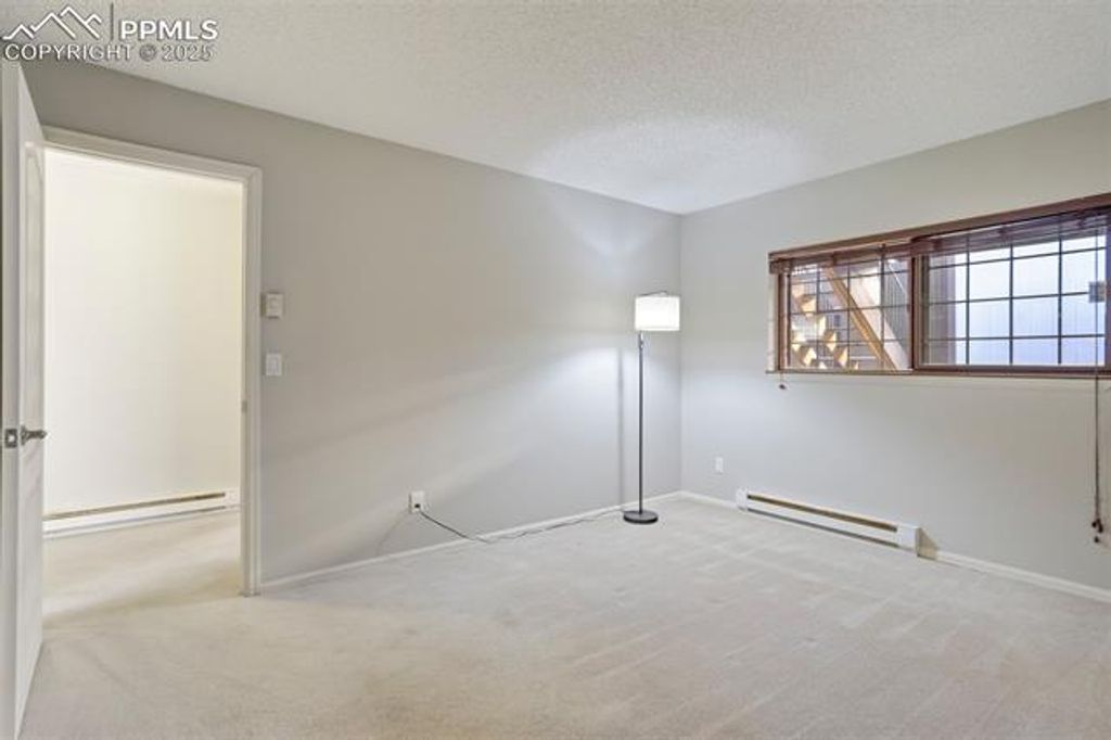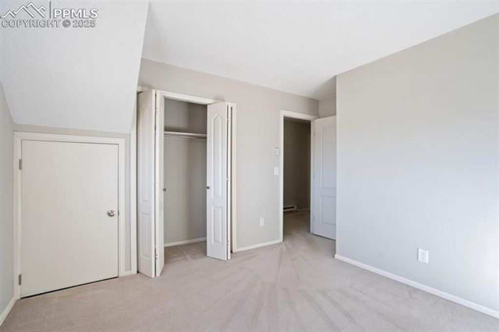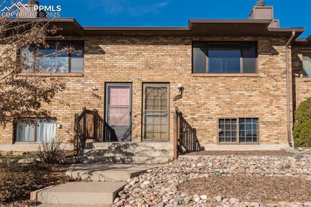 Charming and move-in-ready townhome featuring 2 spacious bedrooms with an awesome mountain view, low HOA, and a detached oversized two-car garage. Step inside to find a refreshed interior with fresh paint throughout, a newly painted front door, and newer LVP flooring that enhances the home's warm, welcoming feel. The kitchen has been updated with newly painted cabinets, newer stainless-steel appliances, and a brand-new dishwasher, perfect for everyday living and entertaining. Updated baseboards on the main level add a clean finish, while newer attic insulation improves comfort and efficiency year-round. A wood-burning fireplace with a tile surround adds warmth to the living room, complemented by newer metal handrails and new wood stairs that blend classic charm with modern updates. The full bathroom on the lower level features a newer bathtub and an updated vanity for a clean, functional look. Step out from the kitchen/dining area to a Trex deck with a metal railing, ideal for relaxing or outdoor dining. Additional highlights include newer baseboard heating, storm doors, a 2020 water heater, 2019 service upgrade and roof, cable/wifi readiness, and a low-maintenance xeriscaped front yard. The exterior is primarily brick, offering lasting durability with less maintenance. The detached two-car garage includes a newer door and opener, keypad entry, and two remote openers, providing room for vehicles, storage, or a small workshop. Conveniently located near University Village, UCCS, parks, restaurants, shopping, and everyday amenities, with easy access to I-25, endless trails close by, and the scenic Templeton Gap Trail. This property sits in an area with a blend of residential and light industrial surroundings, offering accessibility and a distinctive setting. A wonderful combination of comfort, thoughtful updates, and mountain views, ready to welcome its next owner.