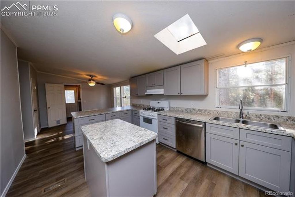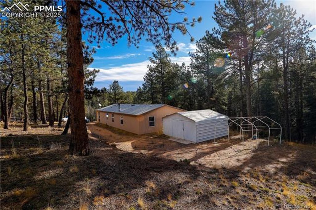 . Cozy 3 Bed/2 Bath home on over 4 acres of beautiful pines in Florissant, Colorado! Vaulted ceilings, wood burning fireplace in the living room, eat-in kitchen with center island and large primary bedroom with attached en suite featuring large soaking tub, dual sinks and separate shower. Plenty of storage in the outdoor shed as well. Lots of privacy in the woods, but just a short drive to Hwy 24 to get to Woodland Park or Colorado Springs.
