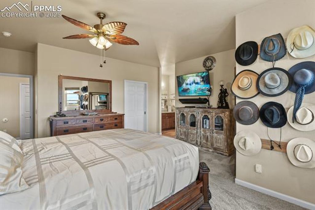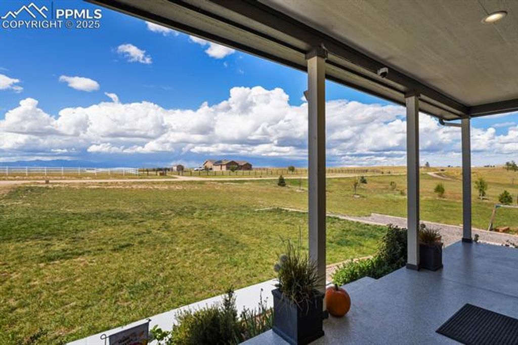 Welcome to a home where family life and Colorado living come together. Tucked into a quiet, welcoming neighborhood with sweeping views of Pikes Peak, this property offers the space, comfort, and connection families are looking for. This 4-bedroom, 4-bathroom home offers bright, open living areas with soaring vaulted ceilings, a stacked stone fireplace and beautiful laminate wood flooring. You can appreciate the well-designed kitchen that serves as the true heart of the home with ample granite counter tops and modern stainless appliances. You'll find the spacious primary suite with a walk-in closet and en-suite bath has a private walk-out access to the expansive composite deck built for entertaining, with built-in gas grill, having stairs to access the back yard seating area and fire pit. The fully finished walk-out basement provides extra living space, a family room, custom built workshop, storage, or the perfect spot for a game room or home theater. Additional features include newly installed solar panels, new air conditioning unit with HEPA filtration system, instant hot water heater, radon mitigation system, a security system and a full service RV site. ATV's and Off Road Vehicles are permitted on the property and all surrounding roads. Located in Falcon District 49 with top-rated schools nearby, located only 10 minutes from the airport, plus quick access to parks, hiking trails, and the shops and dining along Powers Boulevard.