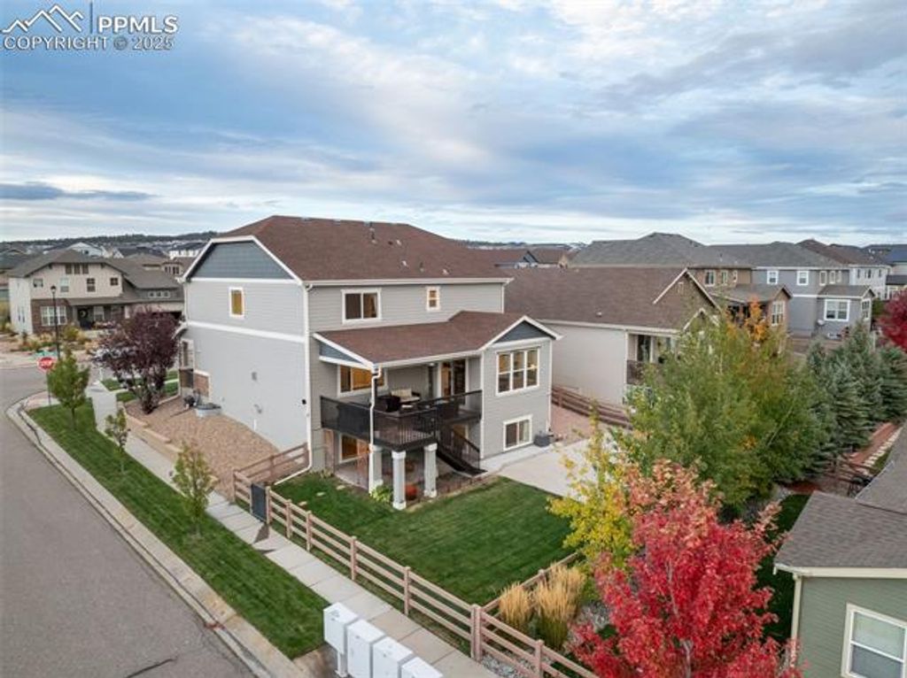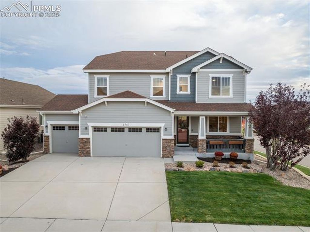 Located in the highly sought-after Wolf Ranch community with stunning mountain views, this exceptional 6-bedroom home sits on a beautifully landscaped and fully fenced corner lot featuring an outdoor basketball court, covered deck, finished basement, and a spacious 3-car garage. Inside, warmth and style meet functionality with an open layout designed for effortless living and entertaining. Enjoy morning coffee on the front porch, cozy evenings by the fire, or sunset views over the Front Range from the expansive back deck. The gourmet kitchen showcases a large granite island with seating, stainless steel appliances, gas range, and large walk-in pantry, flowing seamlessly into the bright and open dining area. The main level living room fits an oversized sectional, and furniture and has a beautiful gas fireplace. A main-level office with French doors offers a quiet workspace overlooking the front porch. Upstairs, there are four spacious bedrooms, two full baths, a versatile loft, and a convenient laundry room. The grand owner's suite features an en-suite bathroom with a custom accent wall, barn door, rain shower, granite countertops, double vanity, and a generous walk-in closet with built in storage and organization. The finished basement provides additional flexibility with a dedicated home theatre and projector, two bedrooms, a full bath, and ample space for games, hobbies, or guests. Modern upgrades include Gemstone exterior lighting, automatic shades, and smart lighting and fans throughout. Just one block from Ranch Creek Elementary and close to parks, trails, and the lake, this home offers full access to Wolf Ranch's vibrant amenities"”recreation center, pool, dog park, SUP/kayaking and fishing lake, and award-winning D20 schools. Schedule your private showing today and experience the perfect blend of comfort, community, and Colorado living.