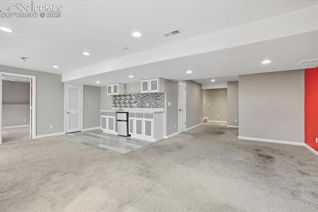 Spacious 4-bedroom, 4-bath home offering over 2,700 sq. ft. in the highly desirable Springs Ranch neighborhood. With a wonderful layout and room to make it your own, with a little TLC you can transform this into your dream home. The main level features a bright living room with soaring ceilings, a large kitchen with maple cabinets, pantry, and plenty of workspace, plus a convenient laundry area and half bath. Upstairs, you'll find a huge loft perfect for a second living space or office, the primary suite with attached bath, and two additional bedrooms with a full bath. The finished walk-out basement adds even more living space with a bedroom, full bath, and a wet bar"”ideal for guests or entertaining. Outdoor living is easy with a raised deck and stamped patio, great for gatherings or relaxing evenings. Located close to schools, shopping, and military bases, this home offers both convenience and potential in one of Colorado Springs' most desirable areas.