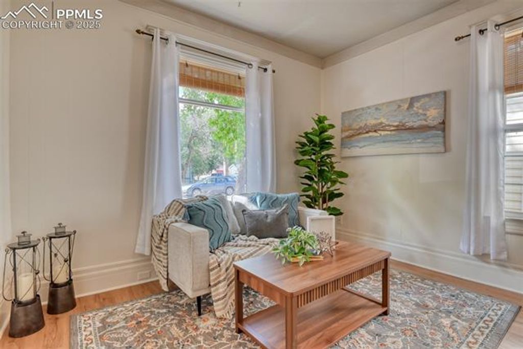 Absolutely charming and full of character, this delightful 2-bedroom, 1-bathroom home is perfectly situated within walking distance to the restaurants, boutiques, and unique shops of Old Colorado City. From the moment you arrive, you'll be welcomed by the classic appeal of a white picket fence and a cozy front porch, ideal for sipping morning coffee or just relaxing. Inside, you'll find freshly updated carpet in the bedrooms, creating a warm and inviting feel. The living areas provide a comfortable space for relaxation or entertaining, while the kitchen is highlighted by a gas range"”perfect for home chefs who love to cook. Natural light fills the home, adding to the charm and warmth throughout. The outdoor space offers plenty of potential for a garden, entertaining area, or simply a private retreat. Home has easy access off street parking. With its unbeatable location, timeless curb appeal, and thoughtful updates, this home is truly a rare find. Whether you're looking for your first home, a downsize, or an investment property, this gem in the heart of Old Colorado City is one you won't want to miss.