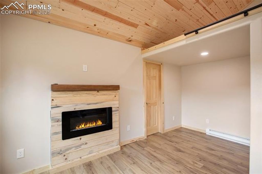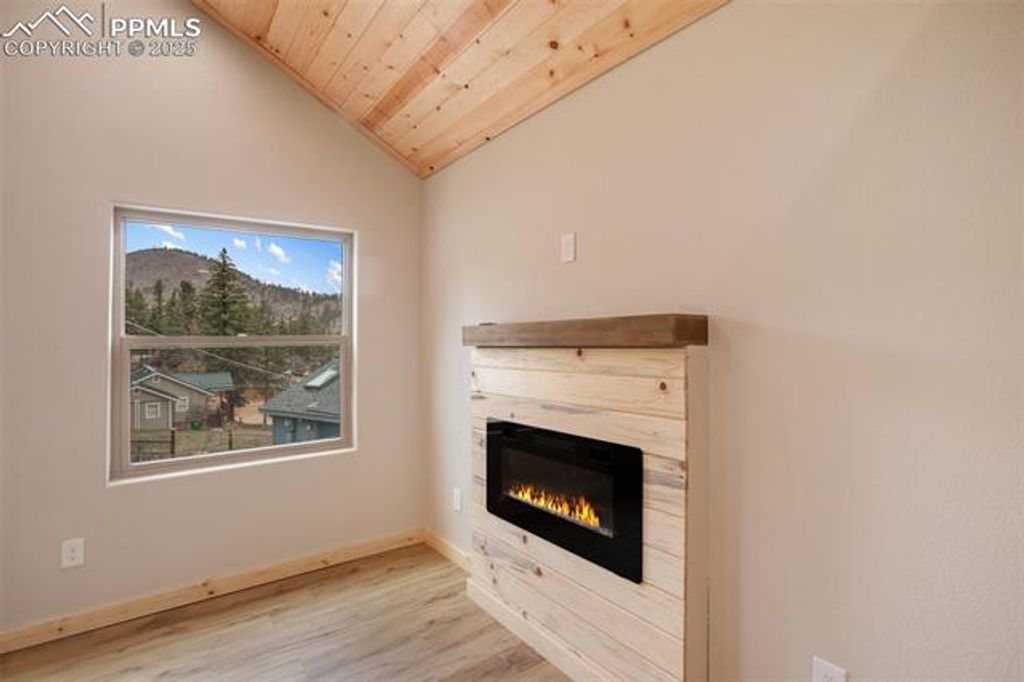What began as Rustic 1940's hunter's cabin has been converted to a darling quaint mountain retreat. Located in the hills of Green Mountain Falls, everything is new. Starting with the exterior: Newer roof, freshly painted new cedar textured LP siding, cultured stone wainscot, highly efficient Milgard windows & a large deck with a fortress railing facing the Mountains with a new tree park on the lot below! Step inside & you will see & feel the extent of this rehab including structural framing, new plumbing & electric with closed cell spray insulation. Even the joist cavities underneath were sprayed to add sound proofing & structural integrity. The interior is clad in a tasteful mix of pine shiplap accent walls, blue stain pine & textured drywall. The open concept family room features a 15 ft lofted ceiling clad in pine shiplap, a custom built in electric fireplace & off to the side is a lofted niche that can serve as additional living space. Pergo LVP flooring adds a nice touch along with a custom tile walk in shower. The kitchen has newly painted cabinets topped with butcher block countertops offering plenty of counter space. A full size refrigerator, built in cooktop & toaster oven provide function & form. The entry is finished off with a custom mountain motif barn door custom made for this home. There is a beautiful pond in the town. There are absolutely AMAZING hiking trails with waterfalls & fabulous views of the mountains in the neighborhood. It is surreal to walk in the heavily treed enchanting forests! There are many great art festivals held here. The town is growing into an art filled haven! Located close to the famous North Pole which features the highest Ferris wheel in the country! Shops, a tavern & restaurants are located within walking distance! Vacation rentals allowed. Effective Oct 1st, 2025: The seller upgraded the electric service in the cabin. The house is prewired for a full size oven/stove. 240 amp service can be installed for a hot tub.