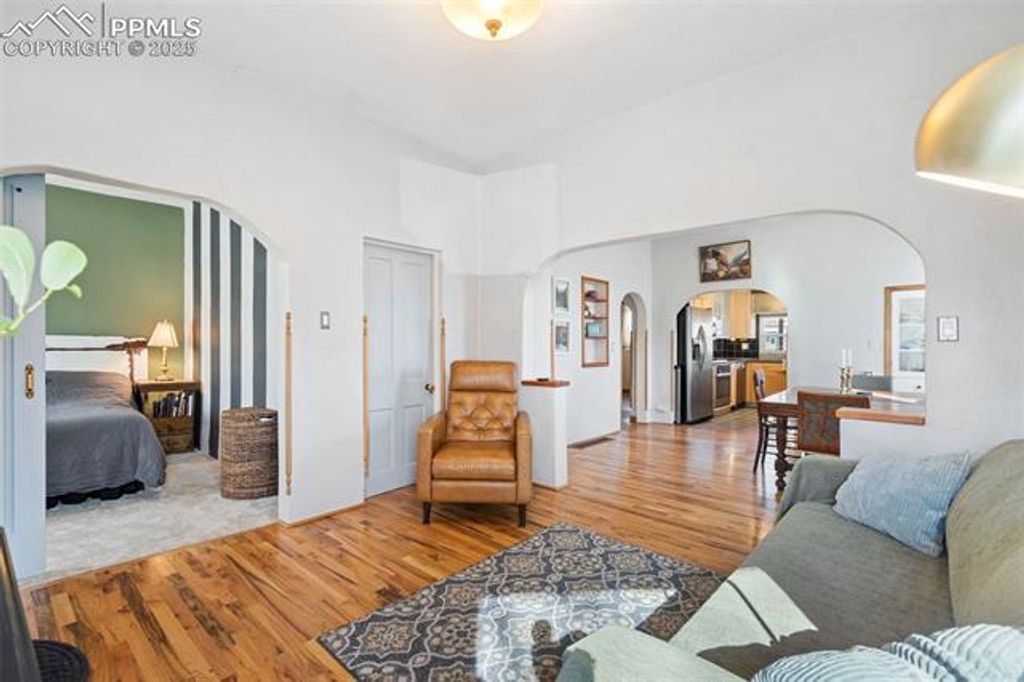 Welcome to this timeless 2-bedroom, 1-bath charmer, lovingly cared for over the years and perfectly nestled in Old Colorado City"”just steps from some of the best hiking in Colorado Springs! Offering a spacious open layout with a delightful blend of vintage character and modern updates, this home features an updated kitchen, vintage arched entryways, original door knobs, classic built-ins, a converted attic bedroom with a walk-out balcony, and an oversized double-lot, fully fenced backyard. The incredible backyard includes a spacious deck with a pretty gazebo complete with electricity, a cozy fire pit, raised garden boxes ready for spring planting, room for RV parking, and a storage shed. Enjoy two large living areas"”one with an adorable corner bay window that's perfect for your holiday tree or for curling up with a good book in the sunshine. The updated full bath includes a stackable washer and dryer for added convenience. Home chefs will love the kitchen with warm wood cabinetry, a modern farmhouse-style sink, under-cabinet lighting, updated stainless steel appliances, new oven, new microwave, and new granite countertops, plus a hidden under-the-stairs pantry finished with fun chalkboard paint. Head upstairs to a spacious bedroom with a bonus area ideal for a home office, plus a walk-out to a private balcony overlooking the beautiful backyard. Recent improvements include new carpet, a recently updated furnace, recently updated A/C (with a new supply line to the upstairs bedroom), updated galvanized and sewer piping, an updated dishwasher, refreshed front landscaping, and the newly installed kitchen upgrades. This updated charmer in the heart of Old Colorado City is truly a must-see"”ready for you to move right in and call it home!