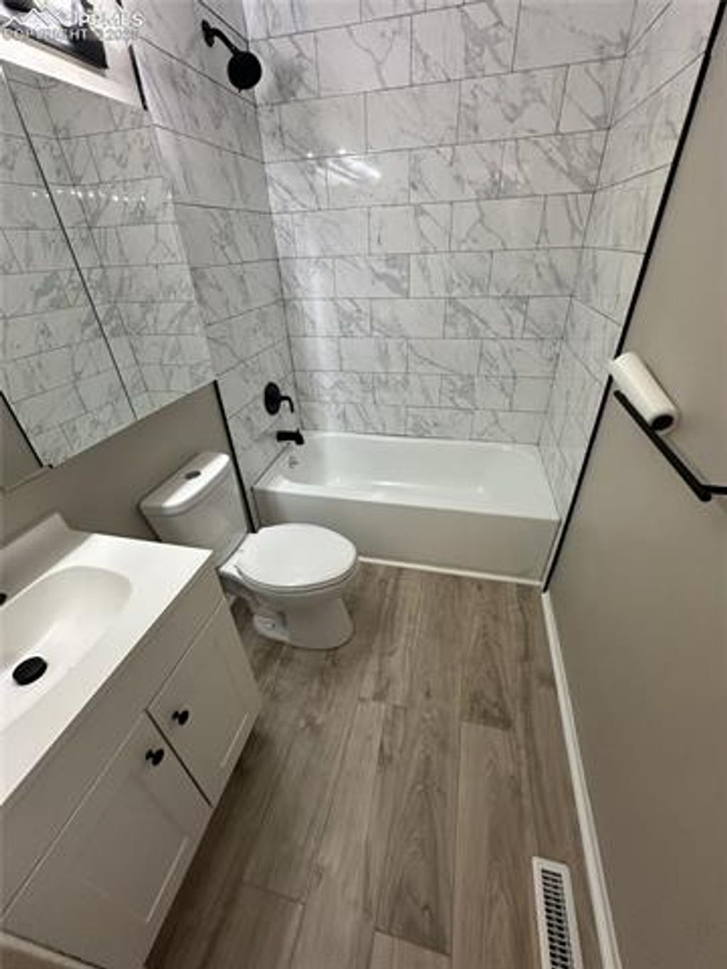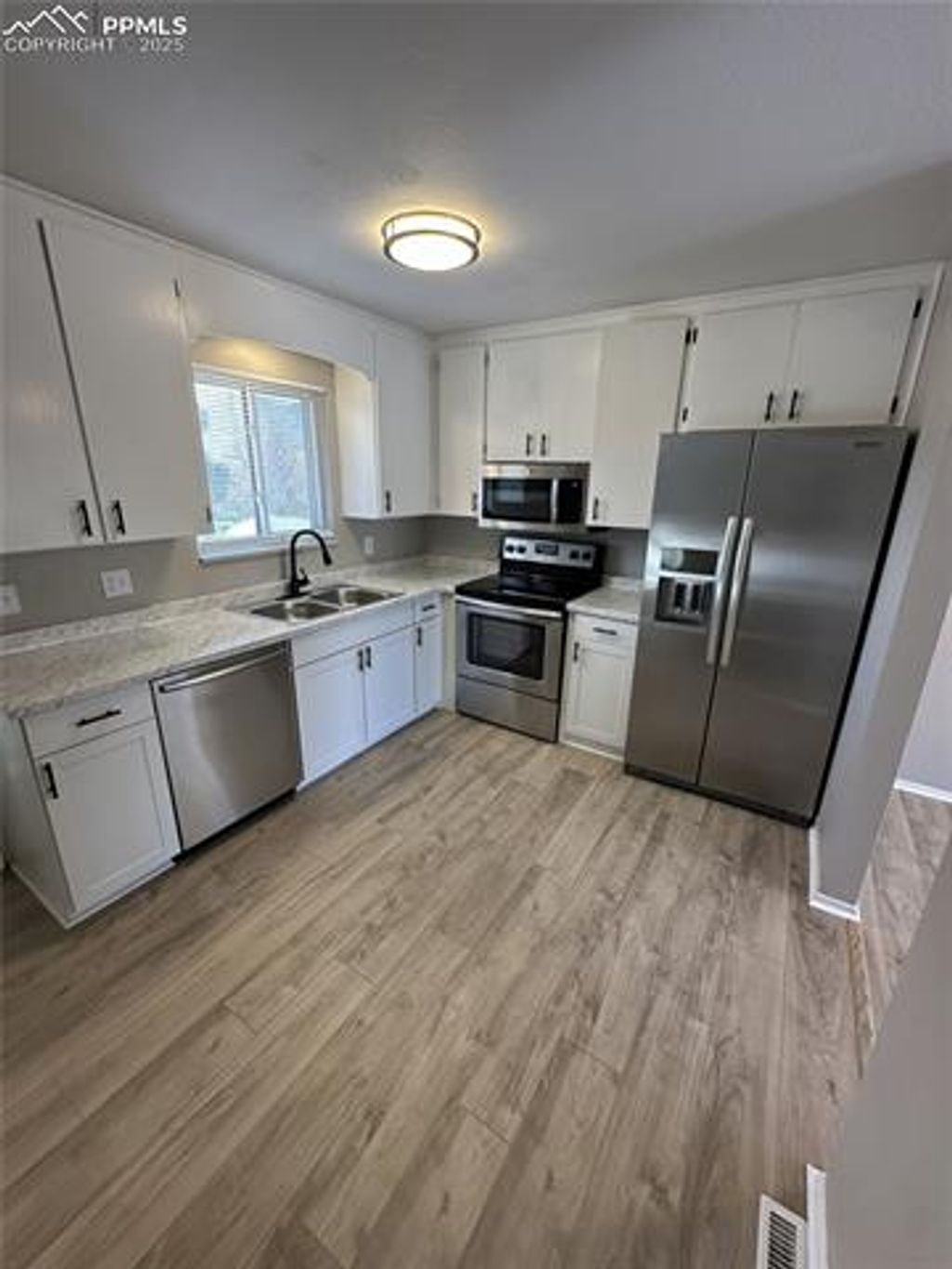 This well-maintained 4-bedroom, 3-bath duplex with a 2-car garage is located on the desirable west side of Colorado Springs. Recently remodeled with new flooring, paint, trim, baseboards, appliances, countertops, and bathrooms. Both units are tenant-occupied through May 2026, offering immediate rental income. Exterior features include stucco siding, Vinyl Windows, and two air conditioning units. Each unit includes a spacious fenced backyard with a patio and pergola. All kitchen appliances are included.