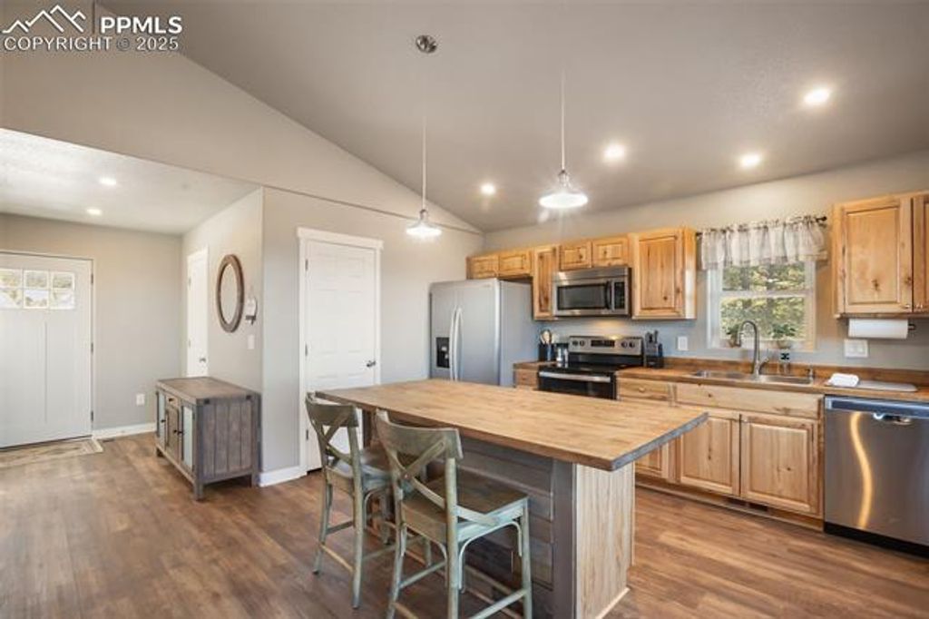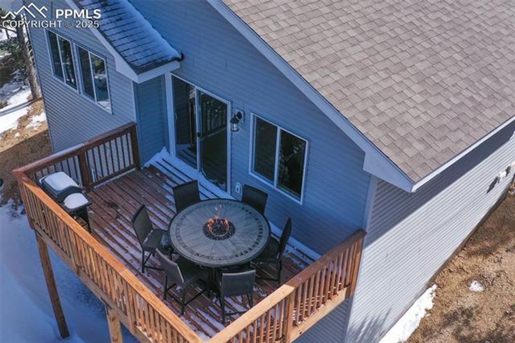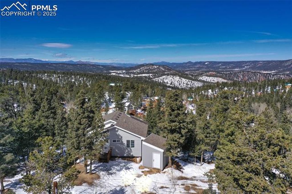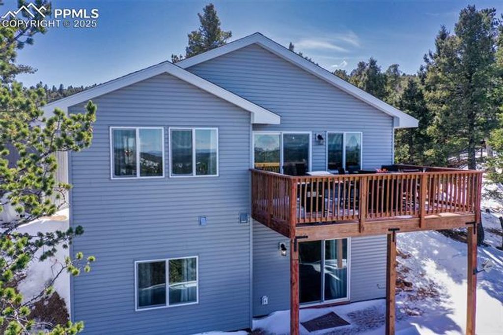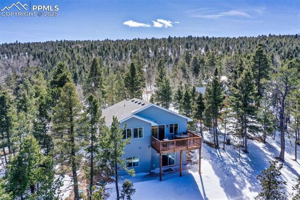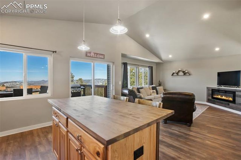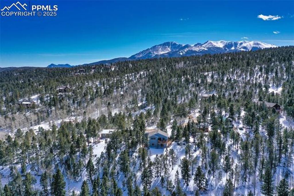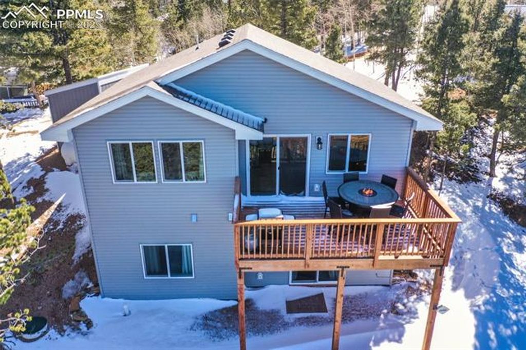 One owner home in pristine condition, and perched overlooking 180 degree views to the North of Mt. Blue Sky, the Continental Divide Western sunsets, and Rampart Range to the Northeast. Located just 10 minutes from downtown Woodland Park, this beautiful home sits on .6 acres of land. Main level living space includes an open concept with vaulted ceilings featuring an electric fireplace framed-in by shiplap, and views from the rear deck. The upscale kitchen with center island and counter-bar seating are featured in butcher block countertops, including stainless steel appliances and a walk-in pantry. Additionally, a full bathroom on this floor to service your needs. Venturing to the lower level, the owners suite includes a walk-in closet and has a walkout glass door to the yard. A second bedroom included on this floor, and both are serviced by an additional full bathroom. Laundry room is located in the storage/utility room. This home has been used as a successful short term rental and can be sold turnkey.