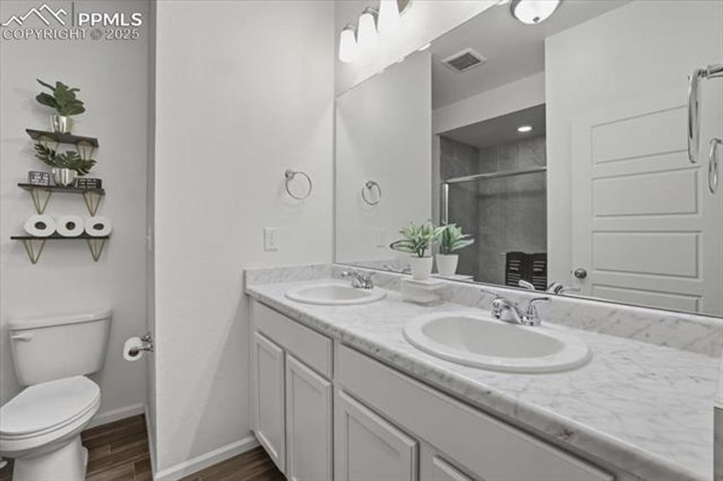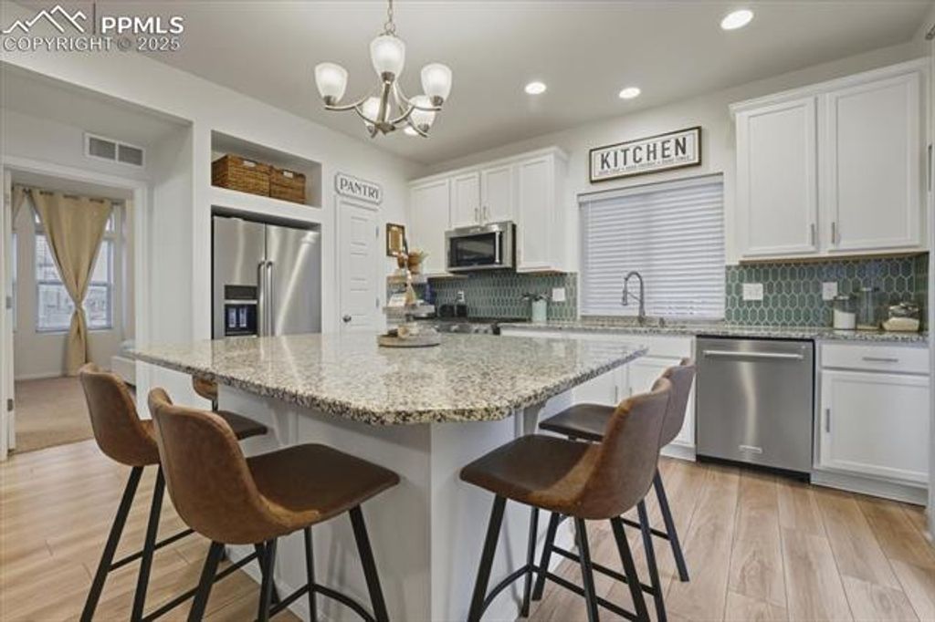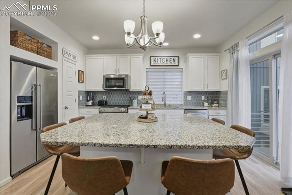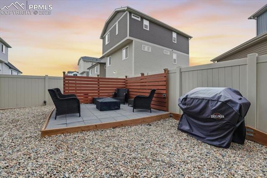 Discover this beautifully maintained, modern home that radiates pride of ownership from the moment you arrive. Featuring three spacious bedrooms and three bathrooms, this residence offers an ideal blend of comfort, style, and functionality. The gourmet kitchen is the heart of the home"”complete with a large granite island that flows seamlessly into the open living room, perfect for entertaining or everyday living. The primary bedroom is conveniently located on the main level and includes a private, attached bathroom. A separate guest bathroom is also located on the main floor for added convenience. Upstairs, you'll find two generously sized bedrooms, a shared full bathroom, and a versatile office area"”great for remote work, homework, or creative space. The lower level features a flexible bonus room currently used as a home gym, offering endless possibilities to suit your lifestyle. Step outside to enjoy a beautiful raised deck and inviting backyard patio, ideal for relaxing, grilling, or hosting gatherings. Located near the award-winning K-12 Banning Lewis Ranch Prep Academy, this community offers exceptional amenities including a clubhouse with a 24-hour fitness center, outdoor Jr. Olympic heated pool, splash park, pickleball courts, over 60 acres of parks and hiking trails, plus trash removal, recycling, snow removal, and more!