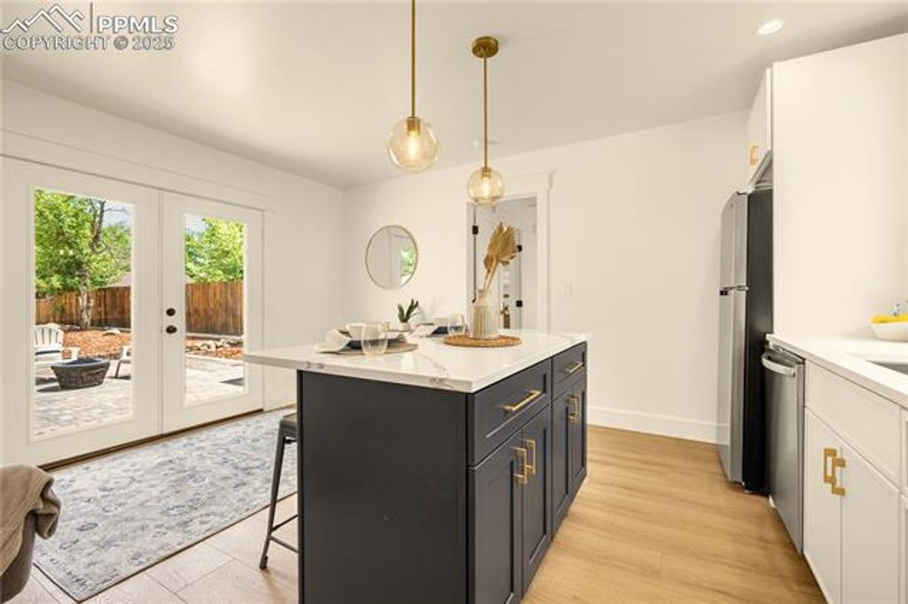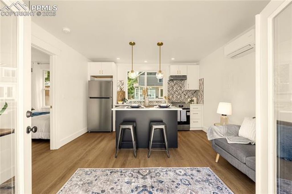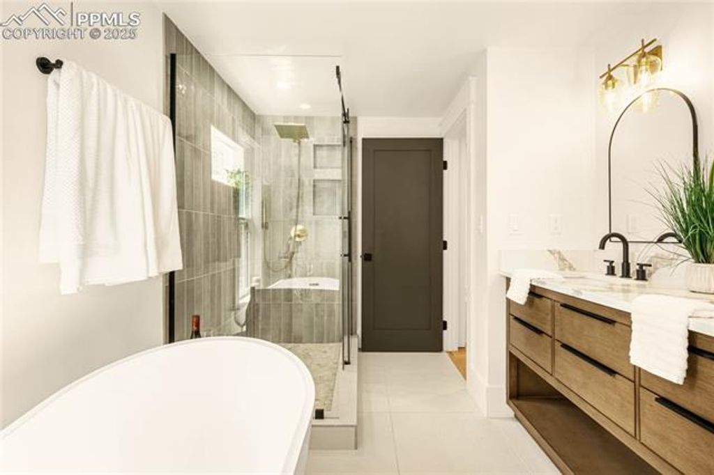 Welcome to The Ivywild Oasis, a stunning restored house and cottage with 4 car garage in the heart of SW Colorado Springs. This rare gem combines timeless charm with organic modern luxury, with rental income potential and a huge workshop to boot. This property is a once in a lifetime opportunity. Where else can you find luxe living, an ADU, and a HUGE shop in the heart of town? The main residence features 3 spacious bedrooms and 2 beautifully updated bathrooms. Original Oak and Douglas Fir hardwoods have been lovingly restored to bring warmth and character to the home, while a stunning fireplace anchors the inviting living room. The gourmet kitchen is both functional and elegant, featuring custom cabinetry, sleek quartz countertops, and a premium range with an exhaust hood. The luxurious master suite is a true sanctuary, with a spa-like five-piece bath, heated tile floors, walk-in shower, soaking tub, and dual vanities. The home has been upgraded throughout with new insulation, electrical, HVAC, plumbing, siding and more. This one really has it all; historic charm with modern comforts and efficiency. The detached cottage offers a private, fully renovated one-bedroom, one-bathroom open concept living space. With its own kitchen and laundry, the cottage is perfect for guests, family, short or long term rental income. Outside, the property is fully fenced with over 600 ft of brand new privacy fencing. The extra large four-car garage provides ample storage or tinkering space. Just a short walk away sits the Ivywild School complex with a brewery, distillery, coffee shop/cocktail lounge, and delightful eateries. This home is also minutes from the Broadmoor, Cheyenne Mountain Zoo, and Cheyenne Canyon's scenic hiking trails. The Ivywild Oasis is not just a home"”it's a thoughtfully curated urban retreat. Don't miss this unique blend of organic modern design and unbeatable location. Go see it!