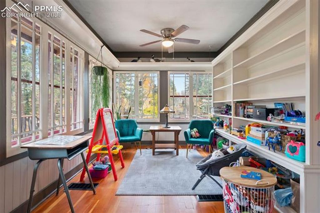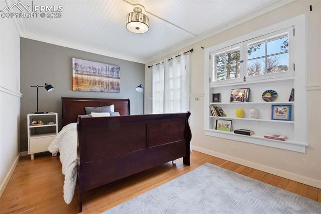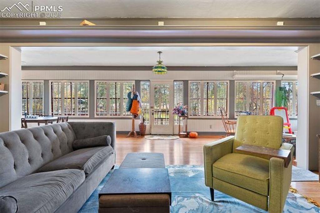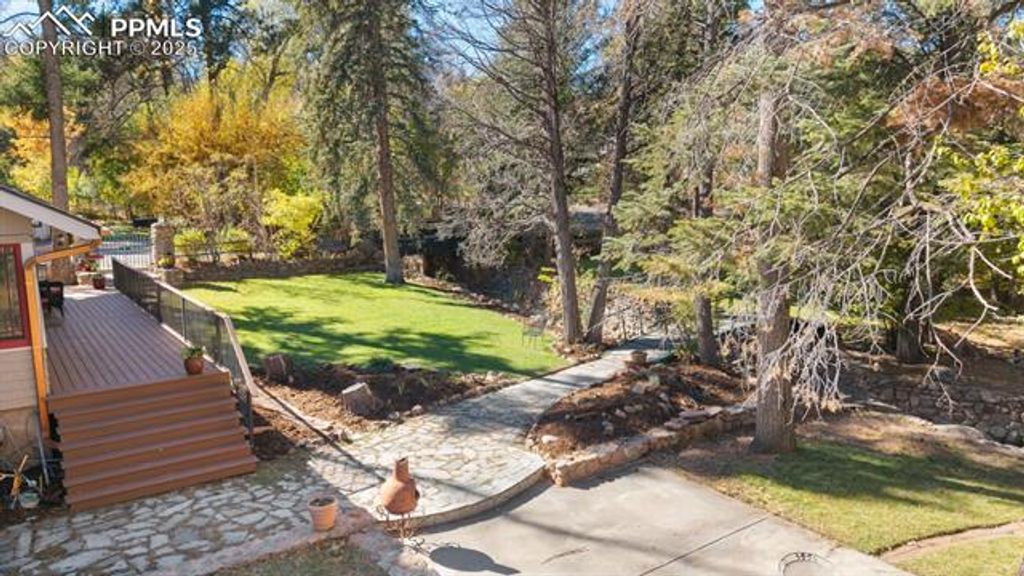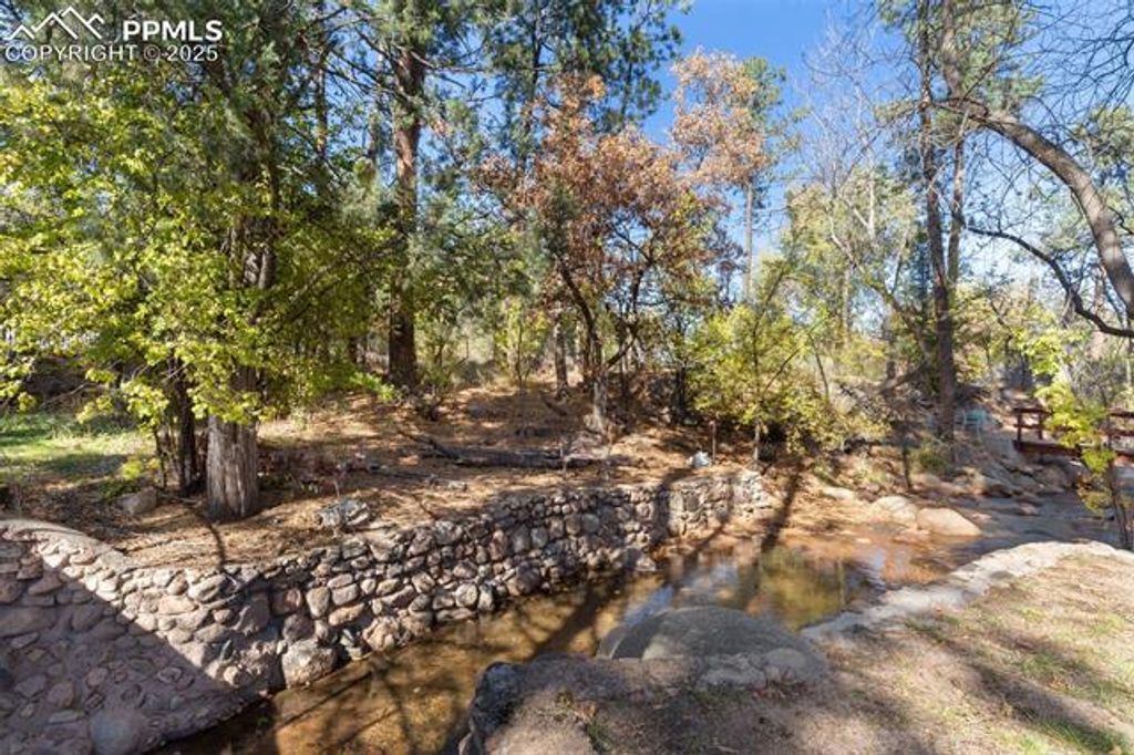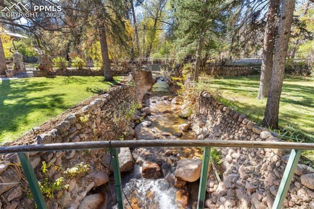 Experience timeless elegance and modern convenience in this extraordinary 4-bedroom, 3-bathroom 1919 Craftsman residence, boasting 4,773 square feet of beautifully finished living space on a premium 15,000 sq. ft. two corner lot in the coveted Cheyenne Canyon neighborhood. Nestled among mature 75-100-year-old trees and lush, established perennial gardens with peony's, violets, bleeding hearts, day lilies and more, this one-of-a-kind home provides a tranquil, retreat-like atmosphere with private creek frontage, manicured lawns, and a scenic bridge, all directly adjacent to Stratton Open Space for endless hiking, biking, and birdwatching adventures. Your own private patio accompanies the babbling brook, where fish and ducks frequent, along with an abundance of native wildlife including great blue herons, deer, bobcats, mountain chickadees, nuthatches and great horned owls. The light-filled interior showcases classic architectural details, including restored wood flooring, a library with built-in shelving, and a dedicated home office"”perfect for today's flexible living needs. Entertain in style with an inviting living room centered around a gas fireplace and a butler's pantry. The primary suite is a luxurious retreat, complete with a wood-burning fireplace, private balcony and full bath. Enjoy versatile living spaces for hobbies, fitness, or relaxation throughout. Located minutes from the Broadmoor Hotel, award-winning Cheyenne Mountain D12 schools, renowned restaurants, and city parks, this remarkable home delivers the best of Colorado Springs living"”heritage, luxury, and direct access to nature, in a neighborhood prized for its peace and sense of community.
