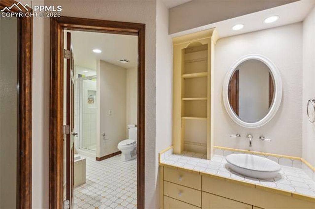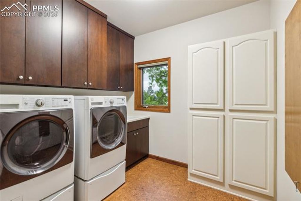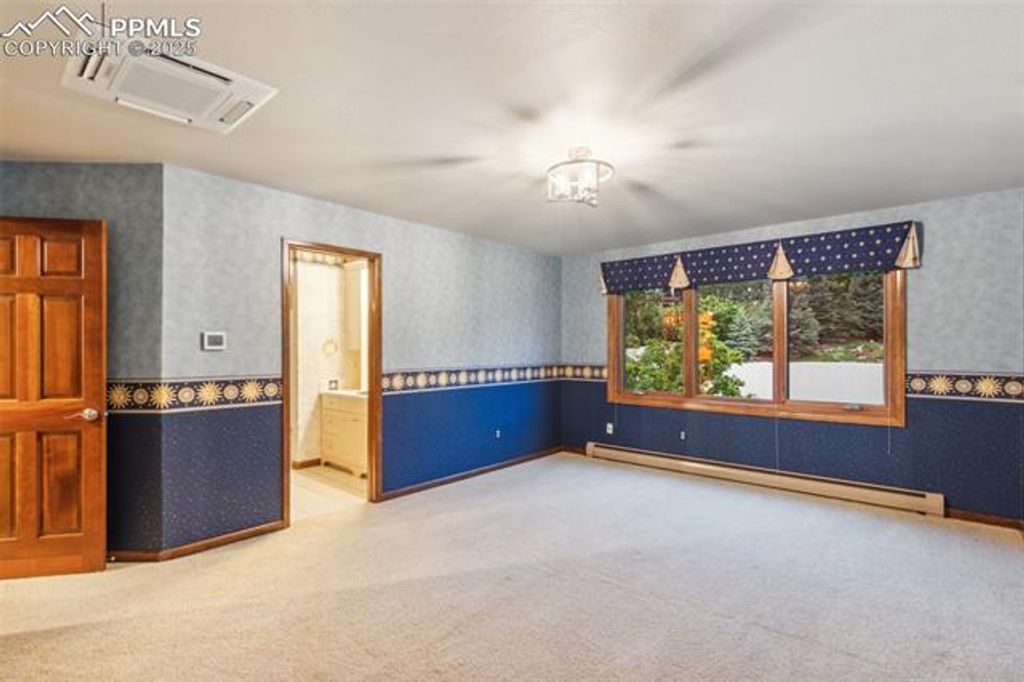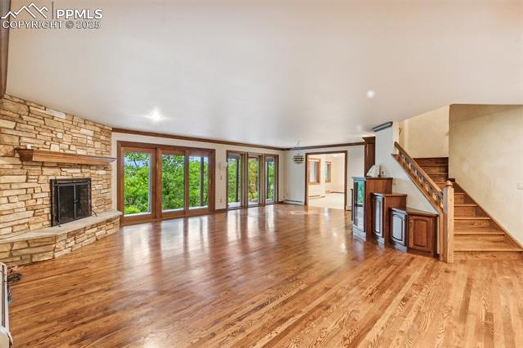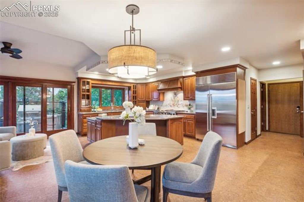Experience the perfect mix of luxury and intelligent design in this masterfully upgraded home, where energy efficiency meets modern sophistication. Nestled in a serene, quiet neighborhood, this residence offers not only a beautiful interior but also cutting-edge systems that enhance comfort & minimize utility costs. At the heart of the home is a Zehnder Heat Recovery Ventilation (HRV) system"”a gold standard in indoor air quality"”working in harmony with a hydraulic boiler-powered radiant heat system for consistent, even warmth. Complementing this is a newly installed in-ceiling mini-split heat pump system, offering zone-by-zone temperature control, so every room can be individually heated or cooled to personal preference. The home also features a high-performance attic fan, and all windows were replaced just four years ago, which significantly boosts insulation and reduces heat loss. Mobile app-controlled thermostats enable you to manage comfort, and the 200-amp electrical service with two 220V outlets in the garage ensures EV readiness for your future-forward lifestyle. Step outside onto a wrap-around Brazilian hardwood deck overlooking an incredible panoramic view that extends from Cheyenne Mountain all the way North to the Palmer Divide, accompanied by an extraordinary full-steel outdoor gas grill with connected gas line. The beautifully updated primary bathroom features a travertine slab and one of the two gas fireplaces upstairs, with a wood-burning fireplace downstairs. The built-in sound systems and the TV stay. Fresh paint throughout, new modern lighting fixtures recently added, and stylish window coverings are included throughout. The backyard features new custom-built steps, a tranquil covered patio with a water feature. The lower level features a walkout with auto-coiling security shutters for added peace of mind. In addition to the private lot, a 1/4 interest in the adjacent northern lot is included, thereby securing this incredible view in perpetuity.