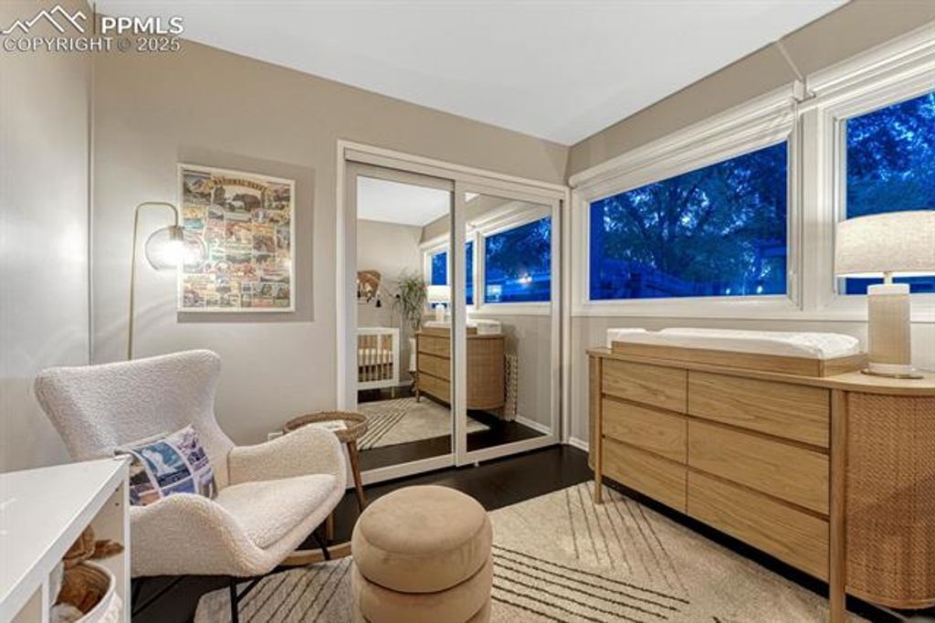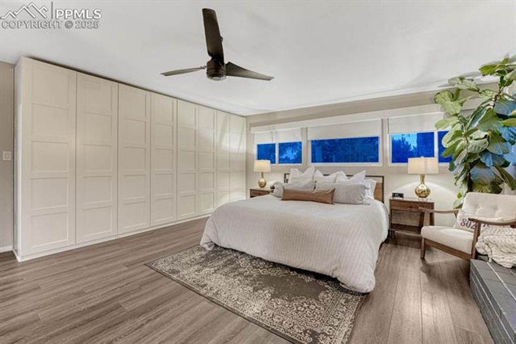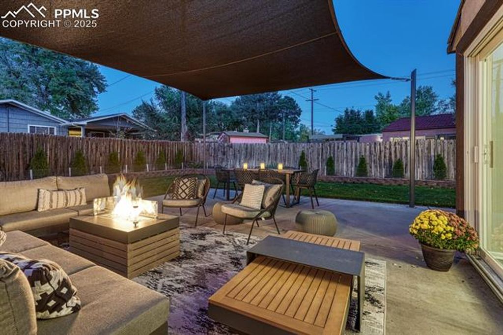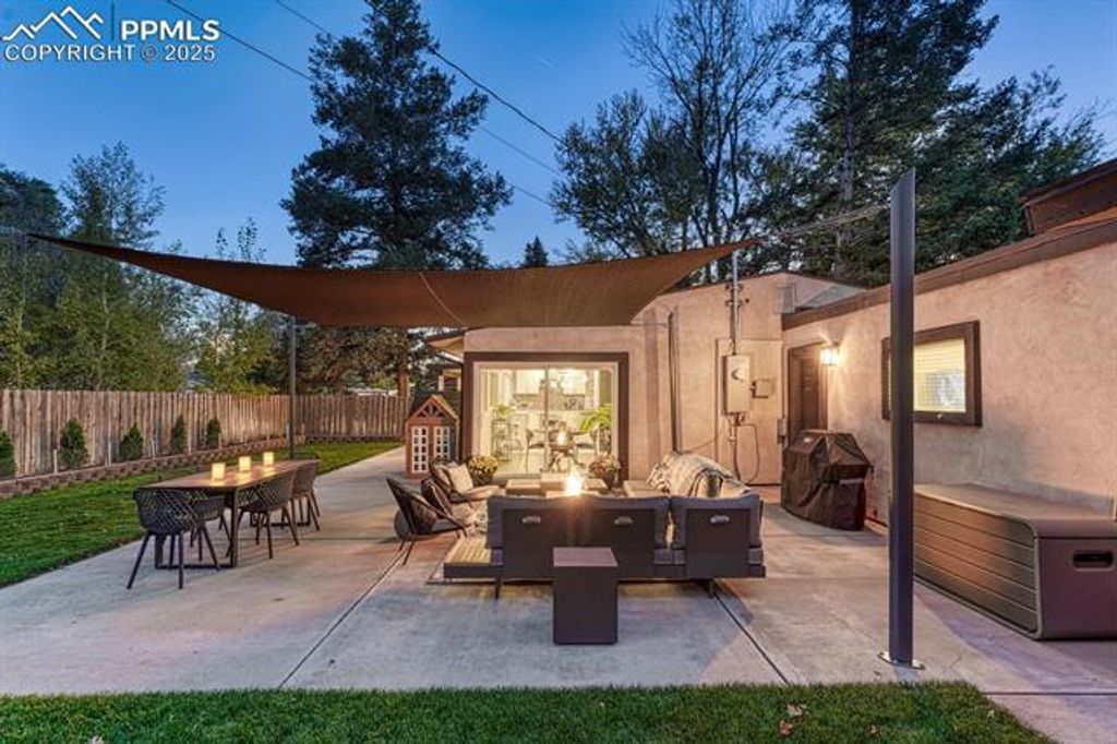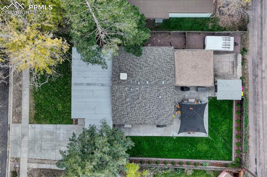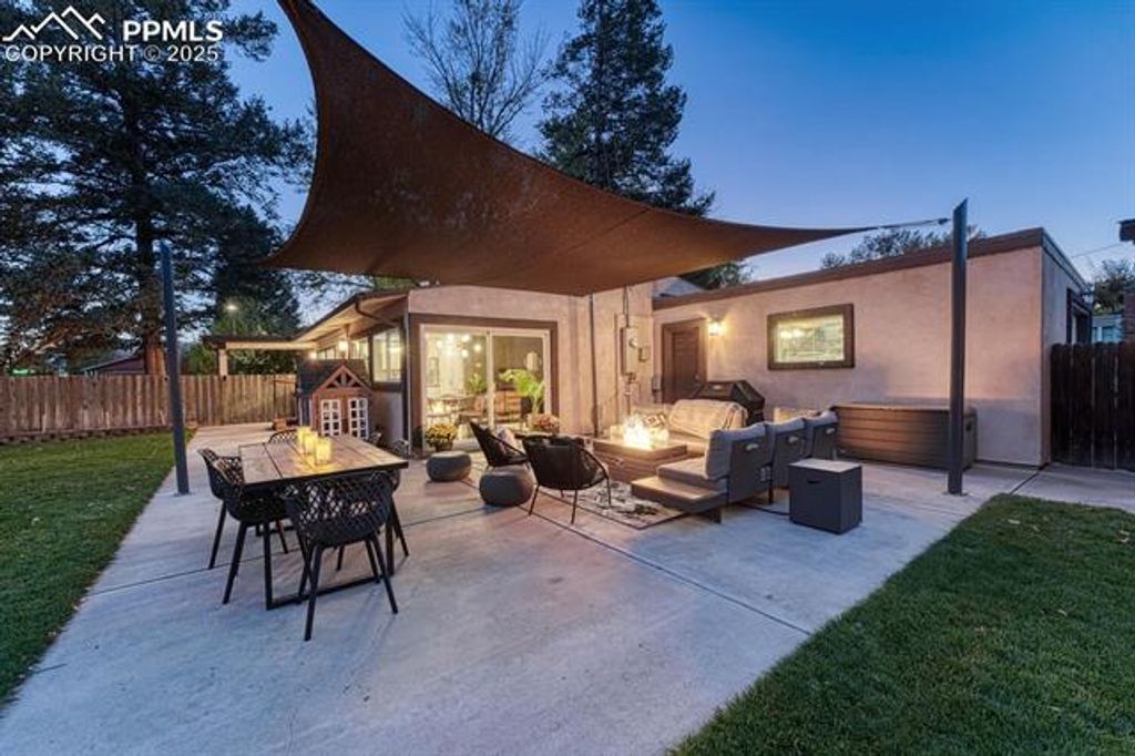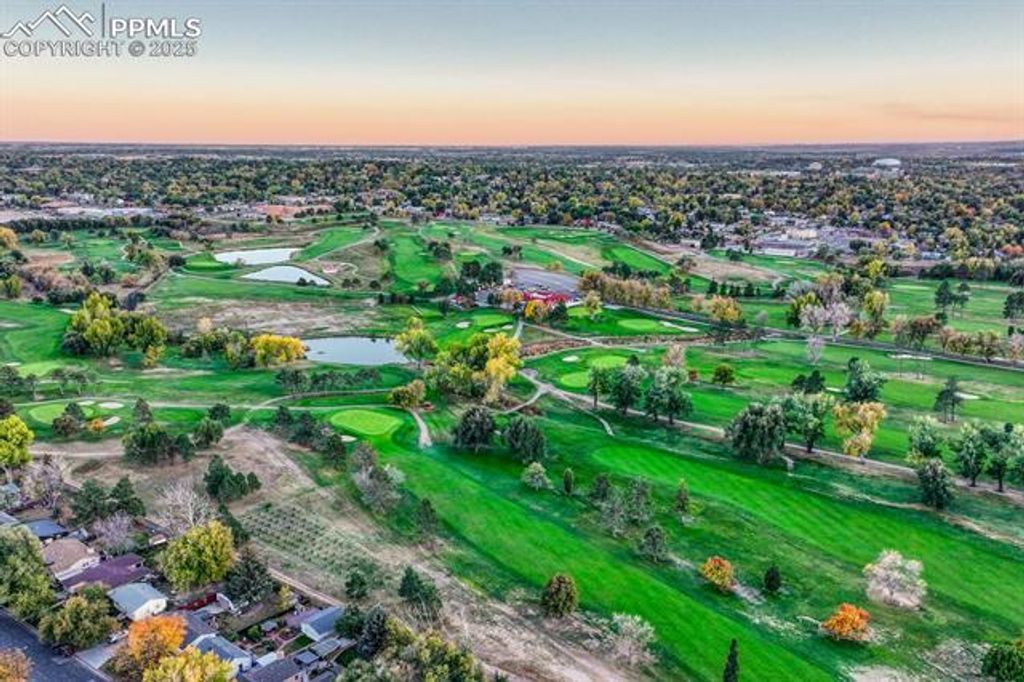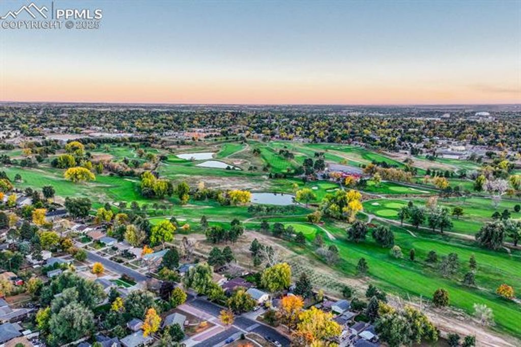 Can you imagine living in a mid-century modern home, tucked into a quiet neighborhood with Patty Jewett Golf course 1 mile south & Colorado Springs Country Club 1 mile north of your front door? Imagine starting each day with a quick walk around the pond/waterfall at Nancy Lewis Park, just a few blocks away! While strolling through your neighborhood, you'll enjoy streets shaded by mature trees, offering scenic views of Pikes Peak, the mountain range, and quick access to the Rock Island Trail! The open floor plan and wide glass patio doors create seamless indoor-outdoor living, with a large wrap-around patio accessible from both the kitchen and backyard. Uncommon and wonderful extras are the planting beds that border the privacy fence, and a private well provides irrigation for unrestricted watering.There is alley access to the garage, and an additional pea gravel parking area for an RV or other toys. (Make sure to take a look at the aerial view to see how spacious and full of options the property lines are.) Some of the upgrades that have been completed in the last 4 years are custom rods, shelving and pull drawers in the massive closet wall seen in the primary bedroom, new appliances, new roof, new water heater, patio posts & sail, exterior lighting and landscaping, window blinds, interior lighting & paint, a laundry closet with full sized stacked washer & dryer, bathroom renovations, hardware updates, installation of luxury vinyl floors in the sunroom and refinished hardwood flooring in the rest of the home.- A full list of the upgrades & costs will be available on the home's flyer when you "Come Take a Look Inside!"